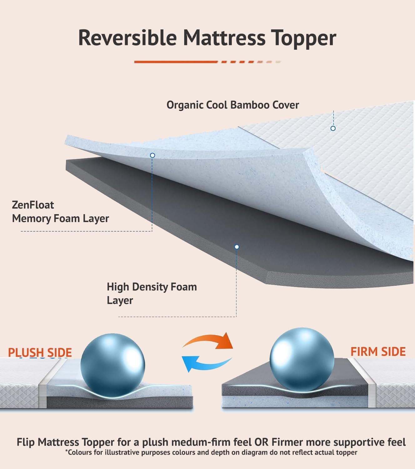 (as of [price_update_date] – DetailsExperience a rejuvenating and relaxing night’s sleep with our Deluxe 7cm Dual Layer Memory Foam Mattress Topper, complete with a luxuriously soft Bamboo Zip Cover. This state-of-the-art mattress topper boasts two unique layers of high-density and high-resilience memory foam, each with its own distinctive benefits. The top layer, made of finer ZenFloat Memory Foam molds to your body’s contours, relieving pressure points and offering precise support where you need it most. The top layer of higher-density reflex support foam, provides a solid foundation that maintains mattress integrity, reducing sagging and enhancing longevity. The remarkable 7cm thickness offers a significant upgrade to your current mattress, ensuring an optimal balance of comfort and support. You will find it perfect for reducing back, shoulder, and neck pain, as well as diminishing restless nights caused by tossing and turning. Our topper is encased in a removable and machine-washable Bamboo Zip Cover. The bamboo fabric is renowned for its natural hypoallergenic properties, resistance to dust mites, and excellent breathability. Its moisture-wicking ability keeps your sleeping environment fresh and dry, ensuring a cool and comfortable sleep throughout the night. The cover features a robust zipper for effortless removal and reapplication after washing. It fits snugly around your topper, keeping it secure on your bed and adding a touch of elegance to your bedding setup. Whether you’re looking to revitalize an older mattress or simply enhance your sleeping experience, our Deluxe 7cm Dual Layer Memory Foam Mattress Topper with Bamboo Zip Cover is a game-changing investment in your sleep health. Sleep well, sleep deep, and wake up refreshed, revitalized, and ready for the day ahead.