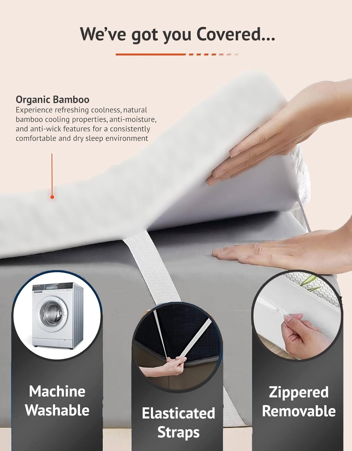 Bamboo Zip Cover: Comes with a removable and machine-washable bamboo cover, allowing for easy maintenance and prolonged lifespan.