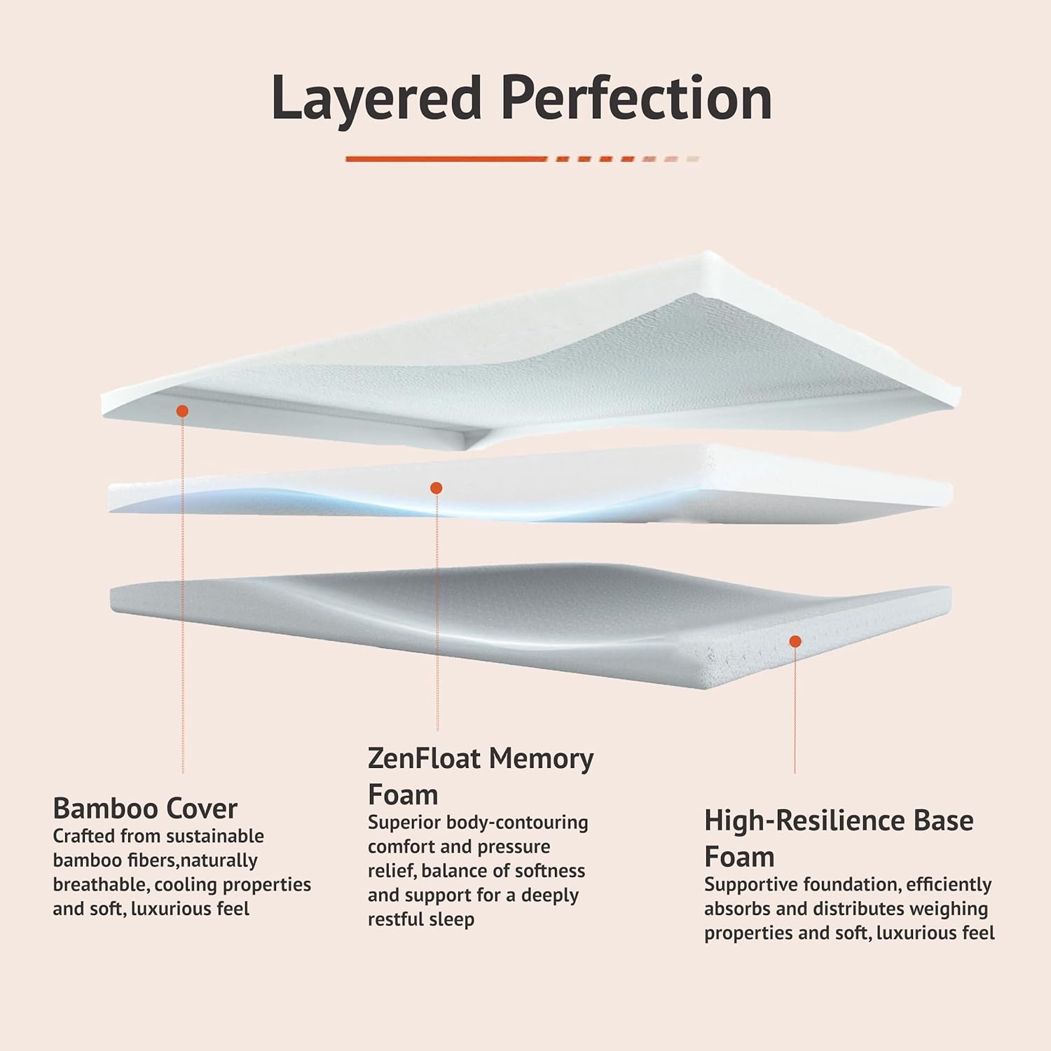 High-Density Memory Foam: The first layer is constructed of high-density ZenFloat memory foam that conforms to your body, relieving pressure points and ensuring a restful night’s sleep.