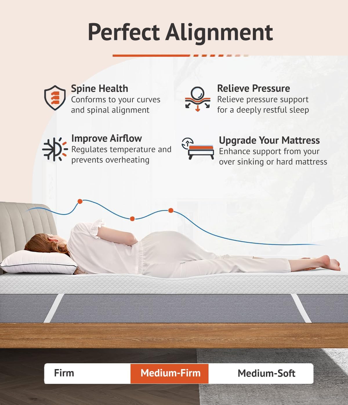 Dual-Layer Design: The mattress topper features two layers, each with a unique firmness and purpose, providing an ideal balance of comfort and support.