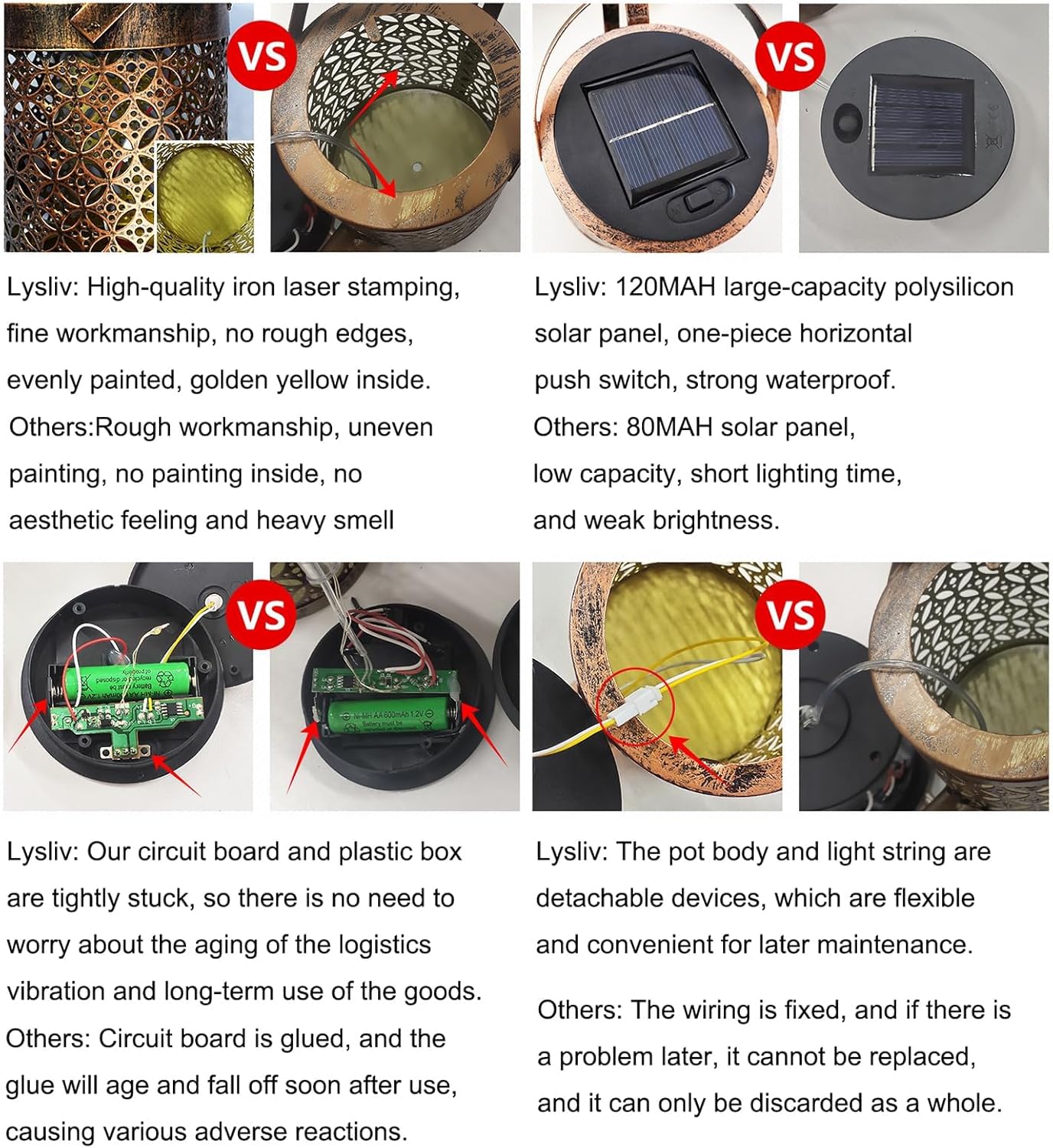 The shell of solar lights outdoor garden is made of high-quality metal, the iron is thicker and harder, difficult to deform, and the copper-plated surface treatment makes it look more retro.