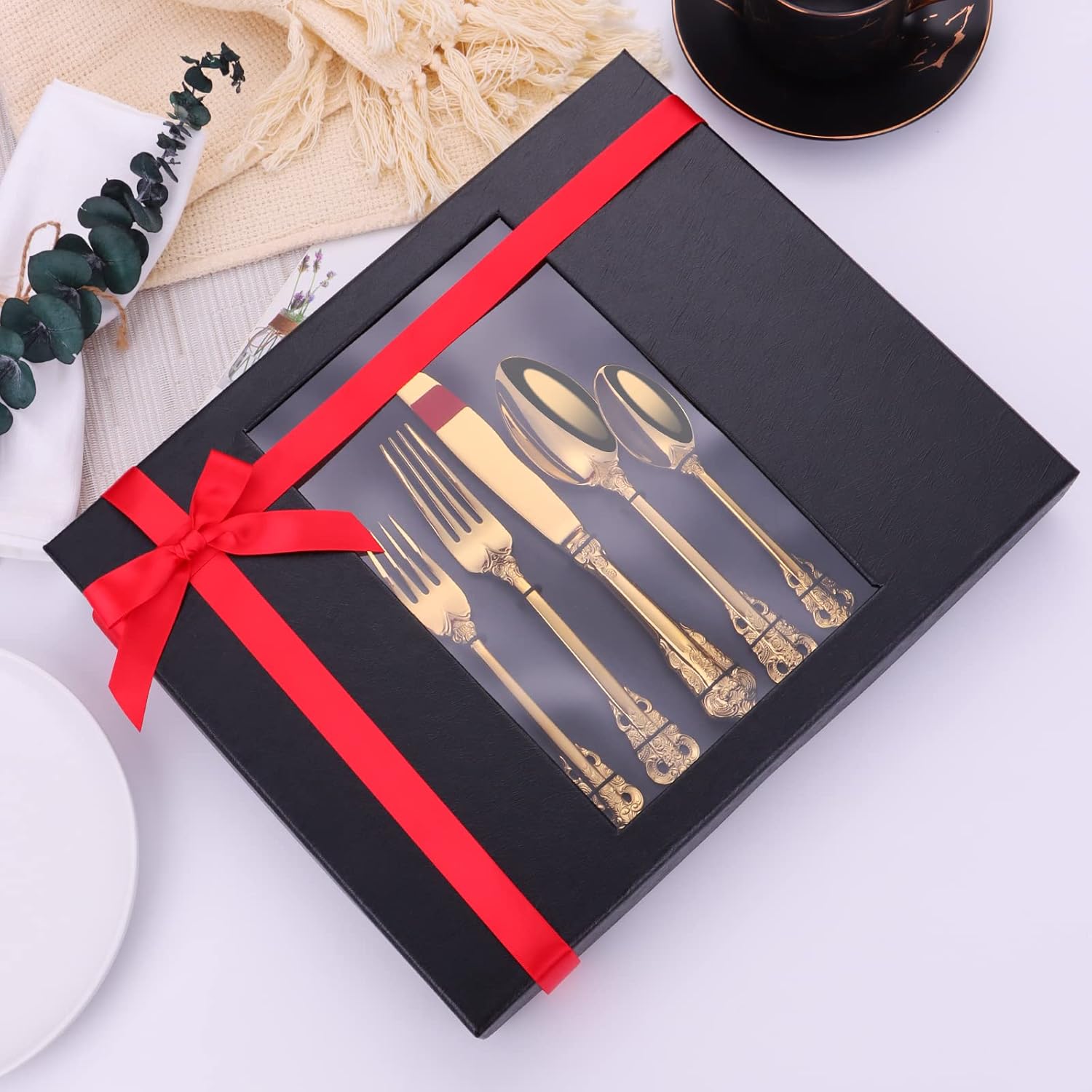 Mafier Gold 20 Piece Cutlery Set with Gift Box, Strong Stainless Steel Knives Forks and Spoons Flatware Set Service for 4, Mirror Polished Tableware and Dishwasher Safe Utenil Set…