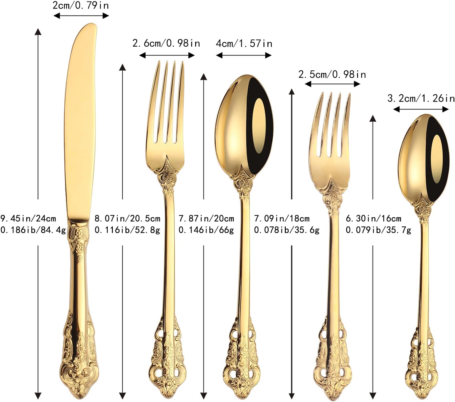 ► WELL-BANLANCED – Each knife fork and spoon has an excellent weight and is comfortable to hold in our hands, the size of the product is ergonomically designed to fit the fingers very well.