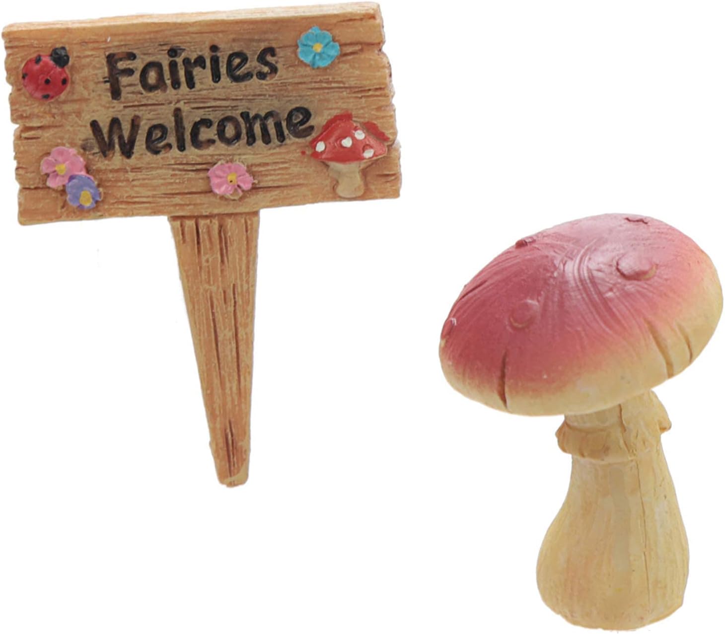 Supplied with 8 different items: Wishing Well (7.5x6x6cm) – Stepping Stones – Mushroom See Saw (4x10x3cm) – Bridge (4x11x4cm) – Fence (3.57x3cm) – Birdhouse (7x3x4cm) – Welcome Sign (5×3.5×0.5cm)