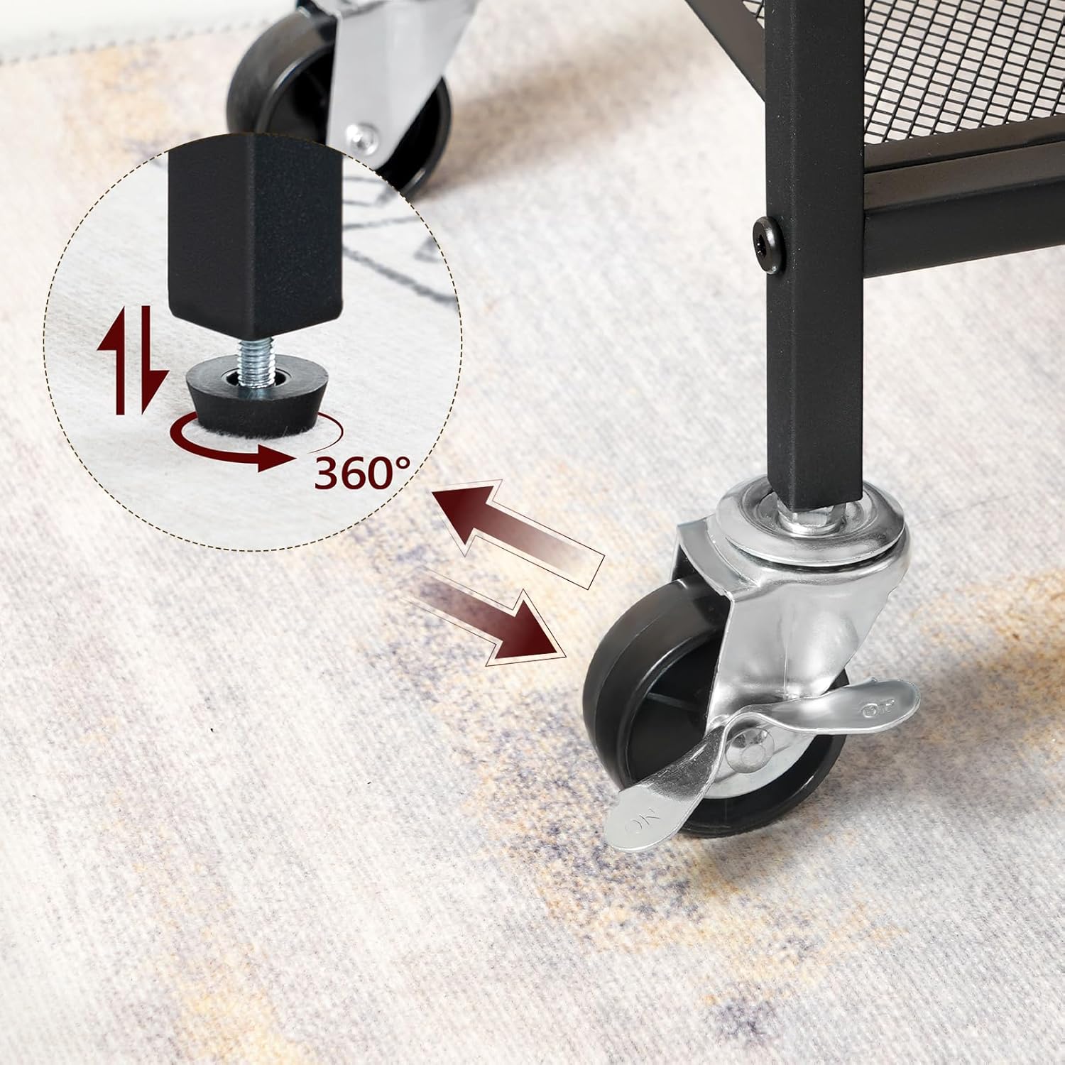 Easy to Move with Flexible Swivel Casters: With four 360 degree caster wheels, the kitchen island cart can be freely moved. And two of them are lockable when the beverage cart stops, which is useful to ensure its stability. You can drive this kitchen cart at any time and stop anywhere you want