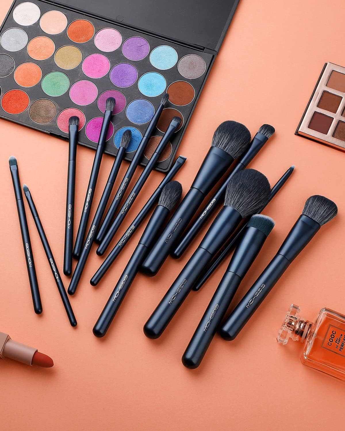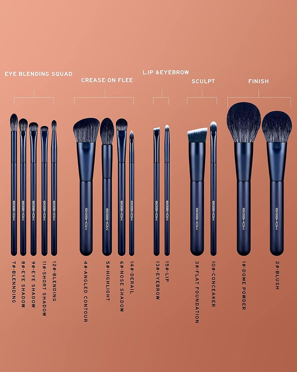 15 pieces essential professional cosmetic brushes in a set, vegan.