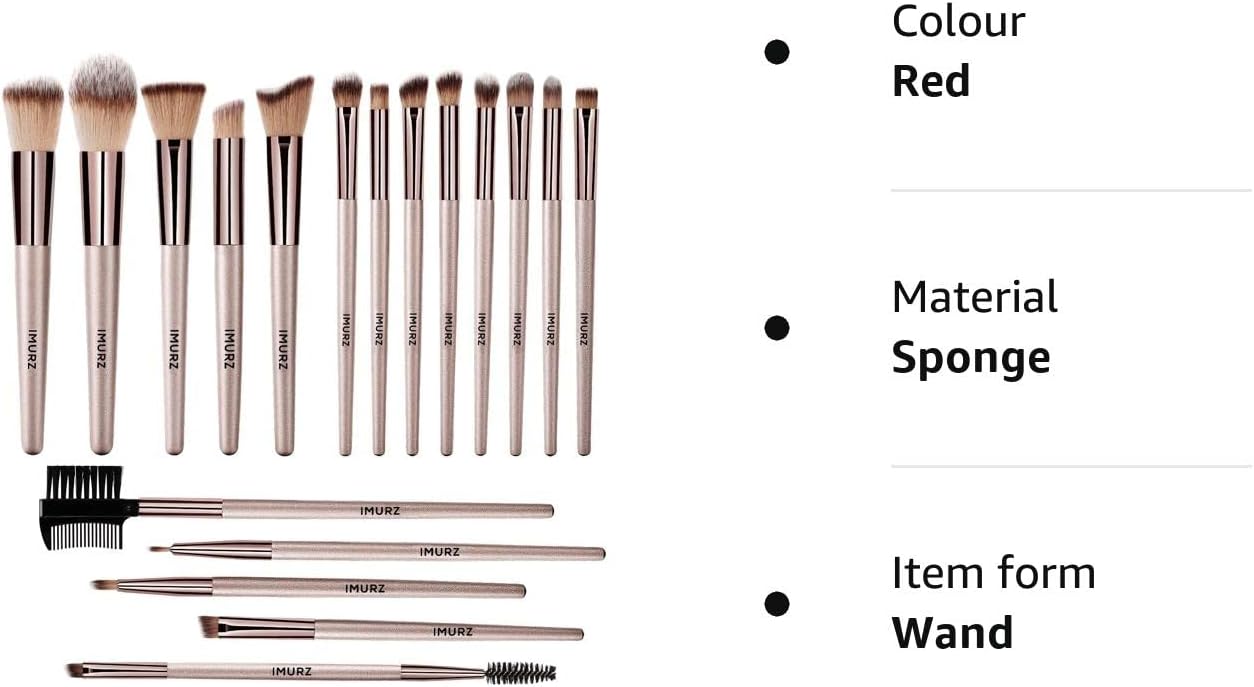 ✅【Professional brush set makeup】 Imurz 18 make-up brushes with a full range of products, the foundation brush, eye shadow brush, concealer brush, blush brush, powder brush, contour brush, blending brush, blush brush, etc., not only for your eye make-up, blush and lip make-up needs, but also for all types of cosmetics.