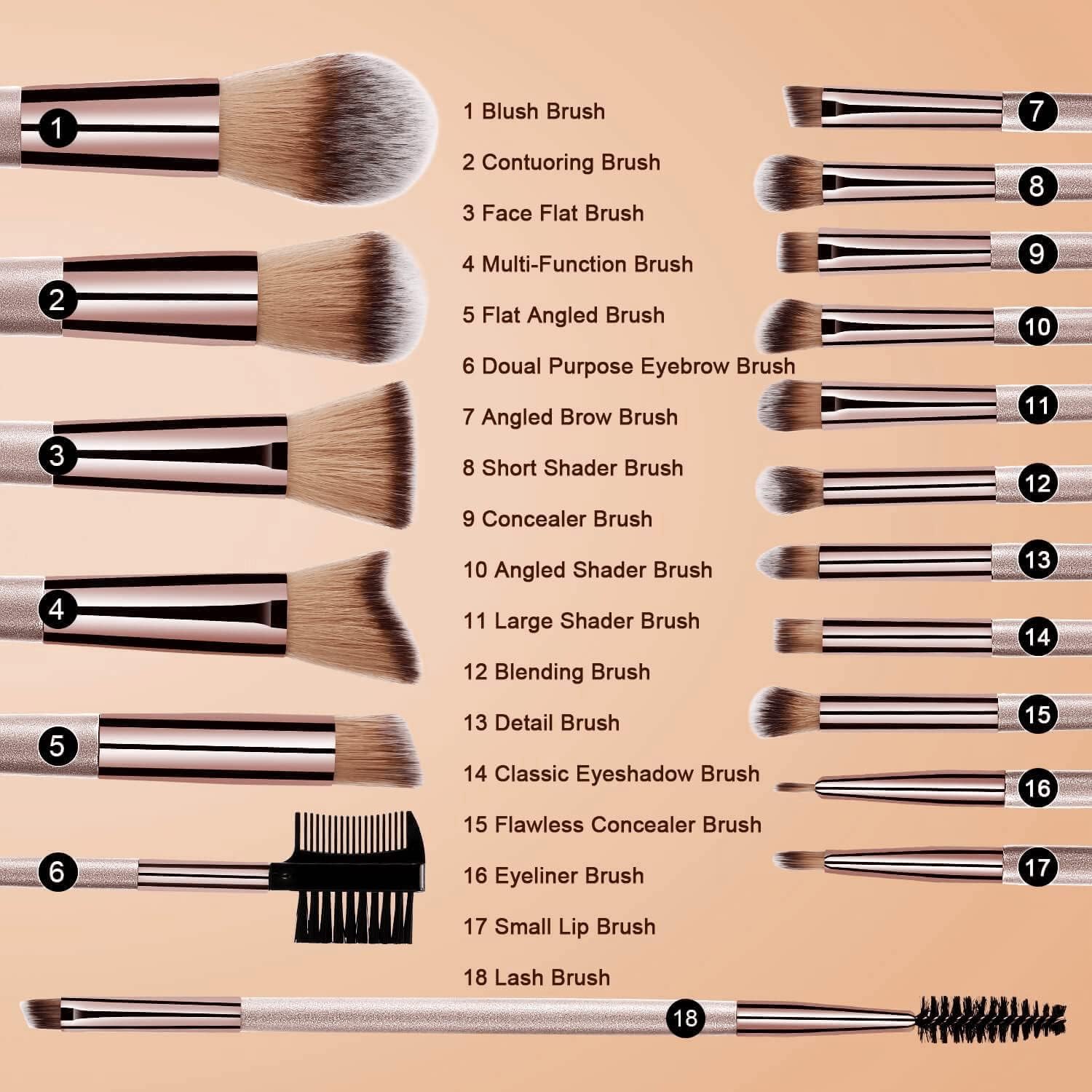 ✅【Stylish Appearance】 Our 18 make-up brush looks very unique and stylish, with delicate brush handles and beautiful brush heads in the most popular and elegant champagne gold colour, a must in your make-up bag.