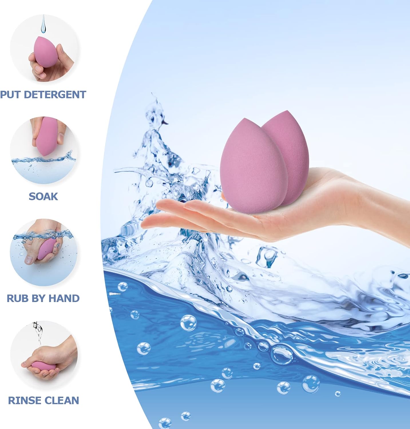 Easy to clean: The sponge is very easy to clean, just squeeze the cleanser onto the sponge, press gently with your hands and rinse with water.