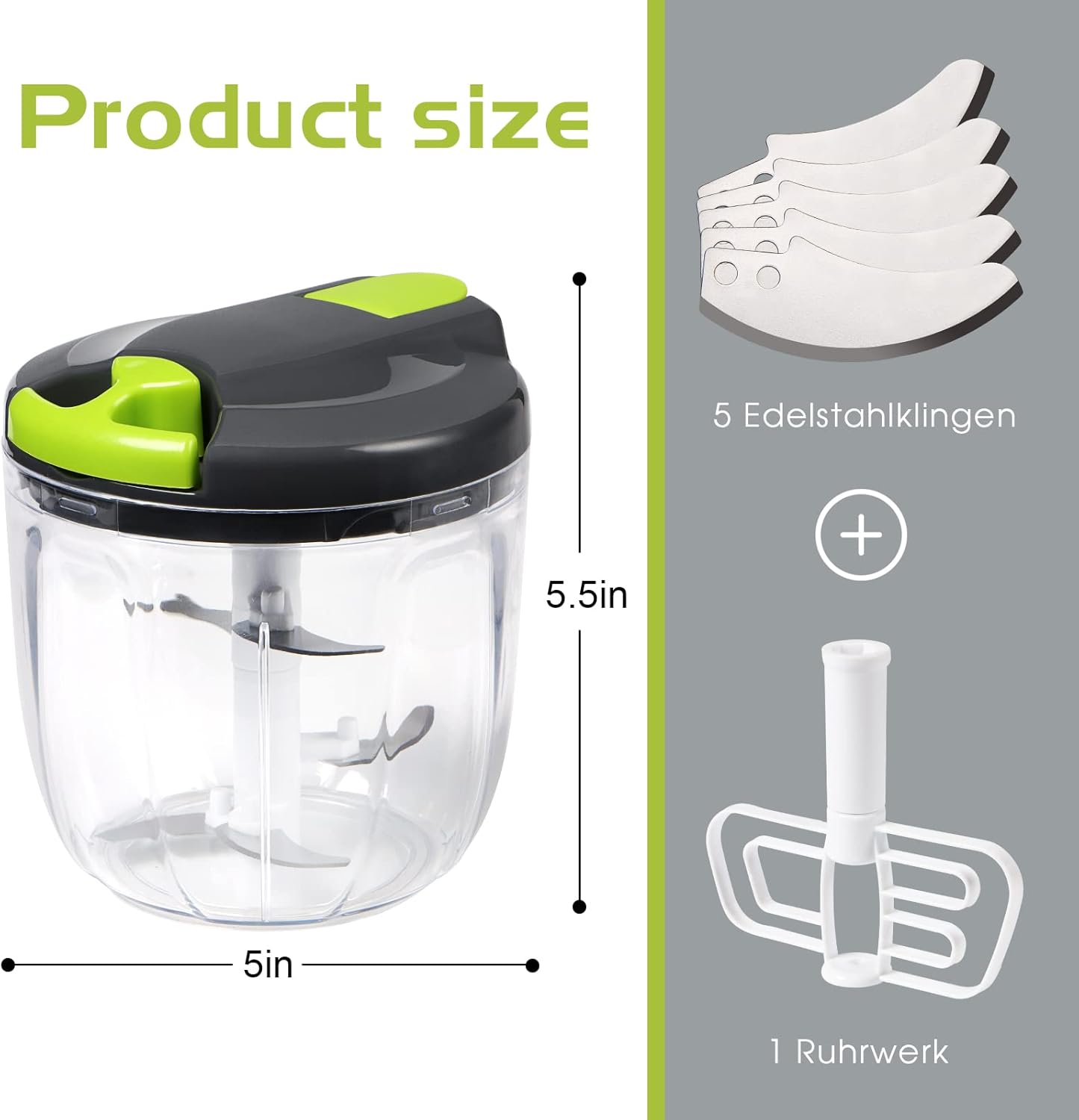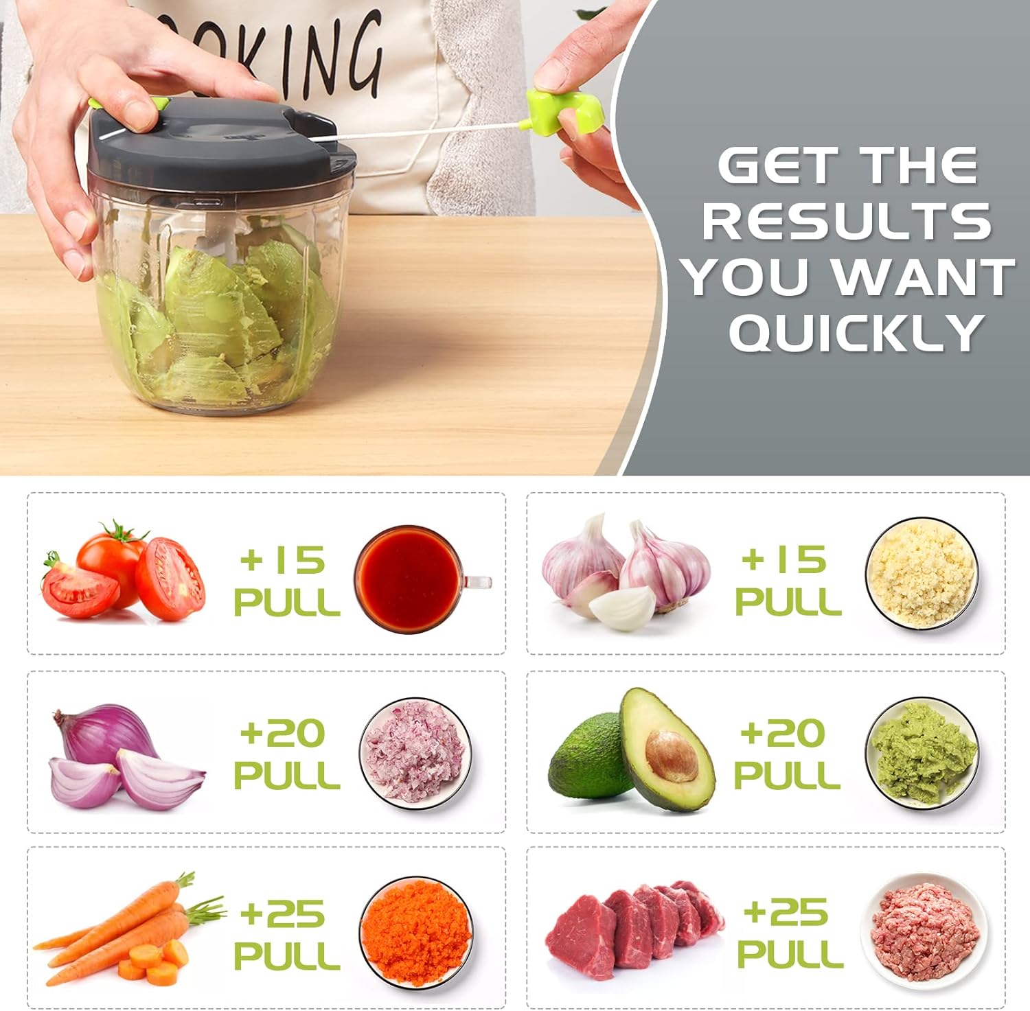 Manual Food Chopper,Sinnsally Manual Food Processor Vegetable Chopper,Kitchen Hand Food Shredder,Onion Slicer Cutter Dicer Grinder,Garlic Chopper Press,Blender Chopping Onions(900ML)