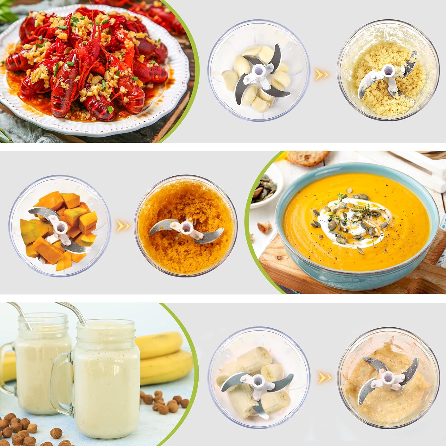 【Durable Manual Garlic Chopper】The stable, non-slip base of the premium hand chopper prevents the chopper from slipping off the counter and the transparent bowl makes it easy to see the degree of chopping. Additional blender can mixe/blend the ingredients effectively.
