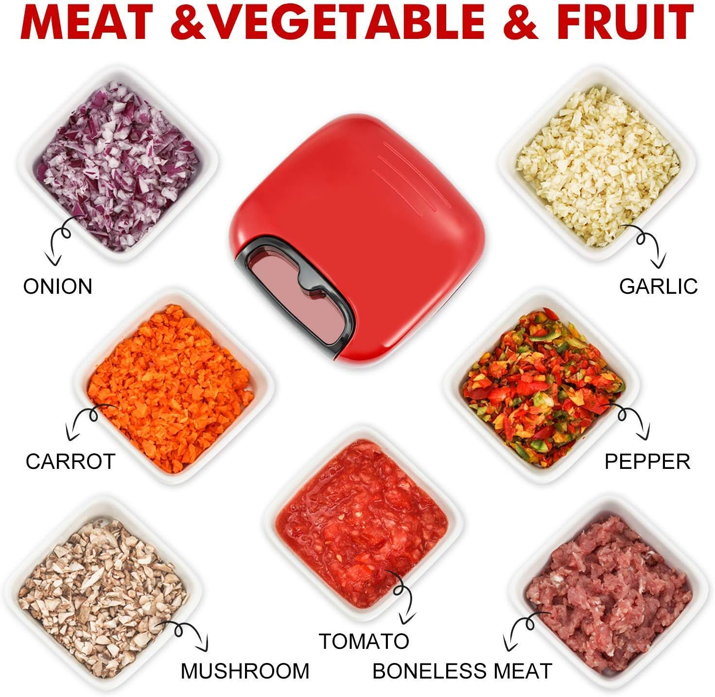 【Multi-function Food Chopper】Meet your different chopping needs. The pull food chopper dicer is perfect for chopping vegetables, fruits, nuts, such as onion, carrot, zucchini, ice cubes, etc.
