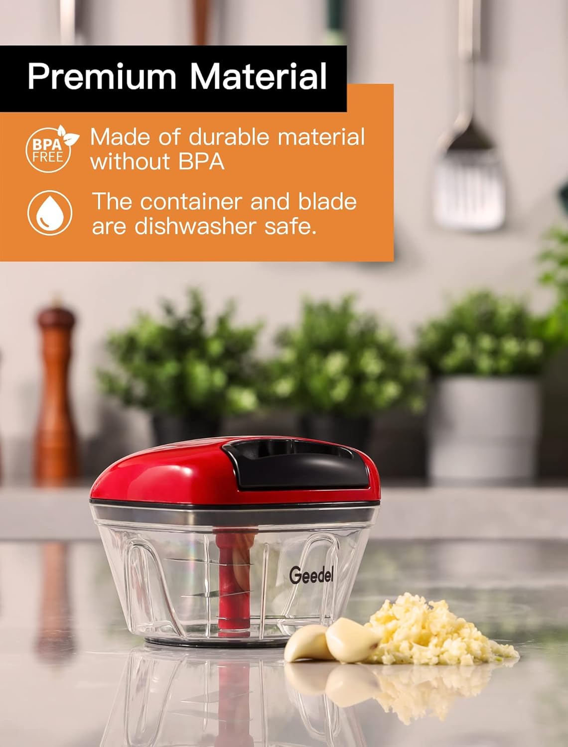 【100% Safety】No chance to touch the blades. All parts of the manual food chopper are made from baby food grade material, BPA-Free. Better protects your family’s food health.