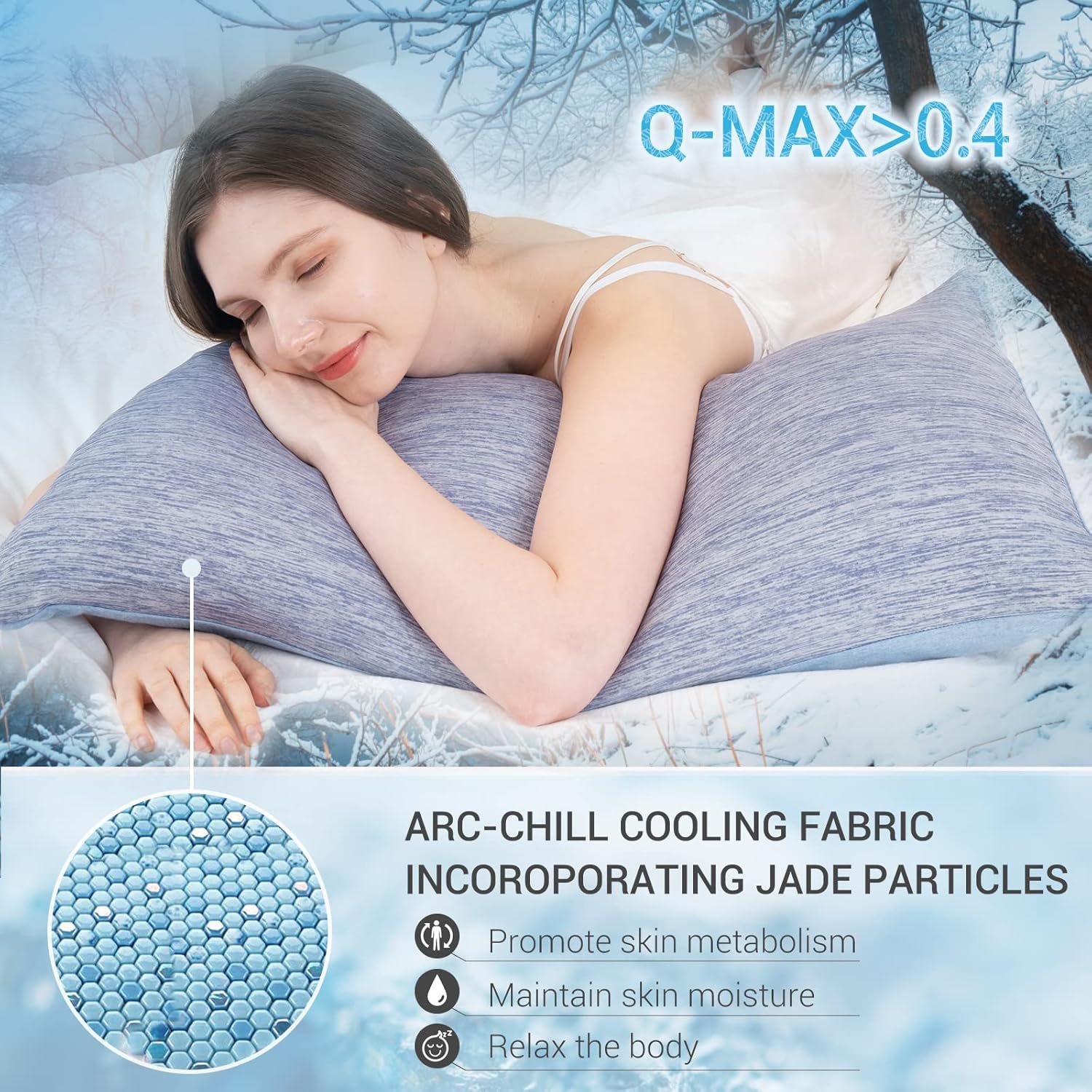 ❄️【Double-sided Technology Design】Marchpower cold pillowcases features two sides. One side is made of Japanese Arc-chill Cool Technology Fabric, with a 0.43 Cool-sensing Value (Q-max), silky and cool, can quickly transfer moisture from the skin to the surface of the fabric and quickly evaporate, very suitable for hot summer. Especially helpful for people who suffer from night sweats every night. The other side is 100% breathable cotton, suitable for Spring and Autumn use.