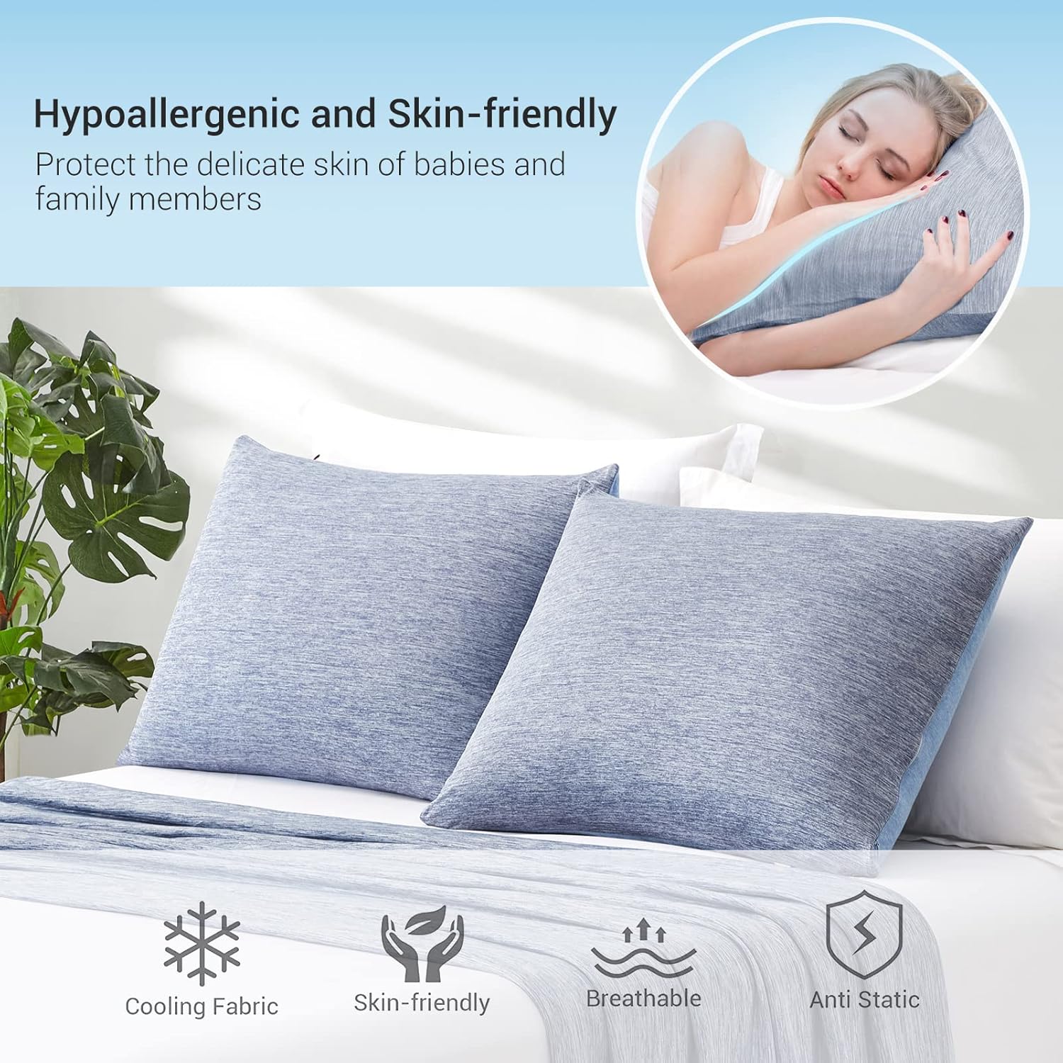 Marchpower Cooling Pillow Cases, 2 Pack Japanese Arc-chill Q-MAX 0.43 Cooling Fiber Cool Pillowcases, Breathable Cool Pillow Covers with Double-Sided Design Skin-Friendly Anti-Static – 50X75cm, Blue