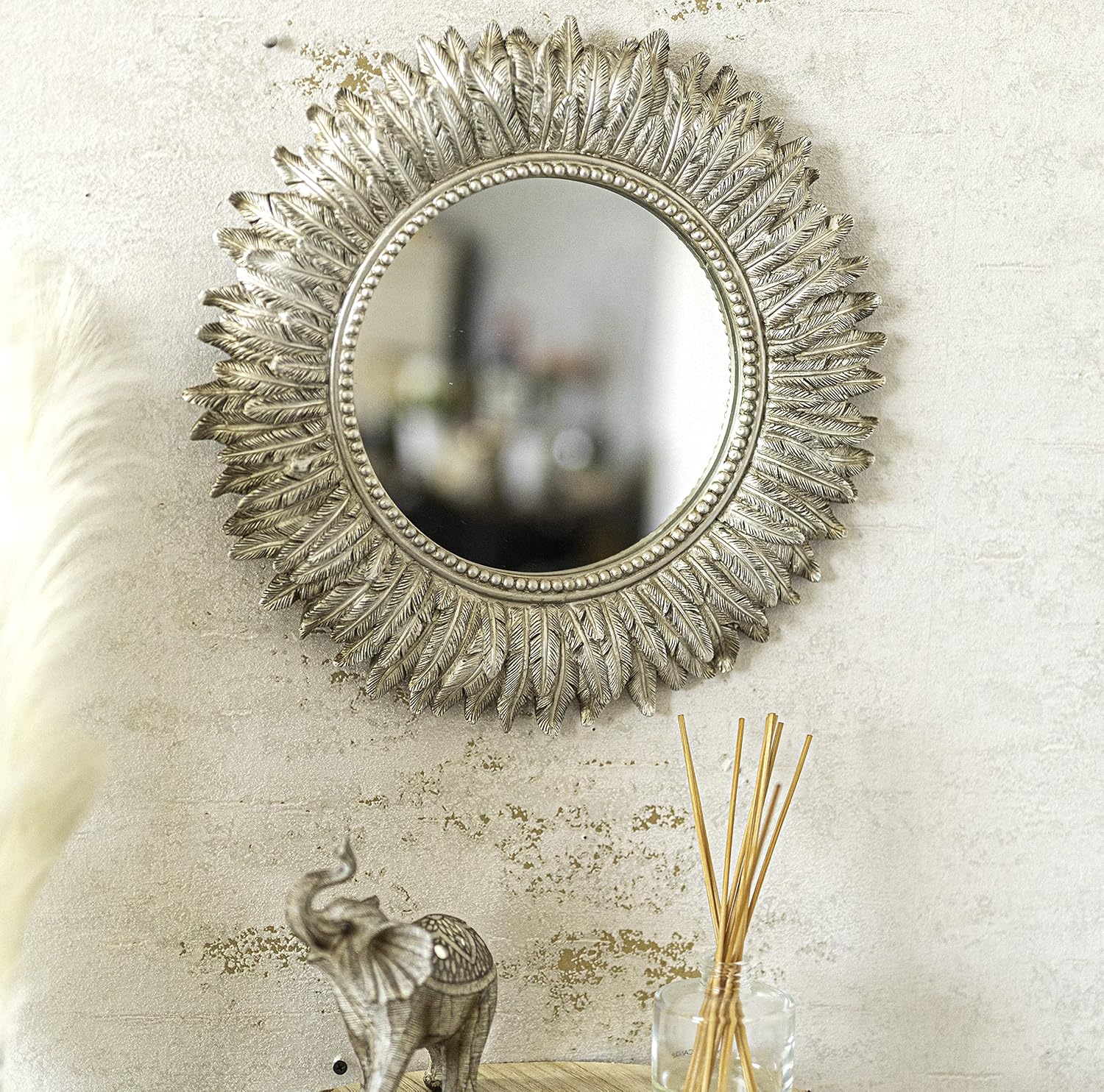 Marco Paul Modern Round Shaped Feather Mirror – Antique Style Wall Mounted Gold Painted Mirror – Decorative Home Accessories Wall Art Vanity Mirror for Bedroom, Bathroom, Living Room Decor (40cm)