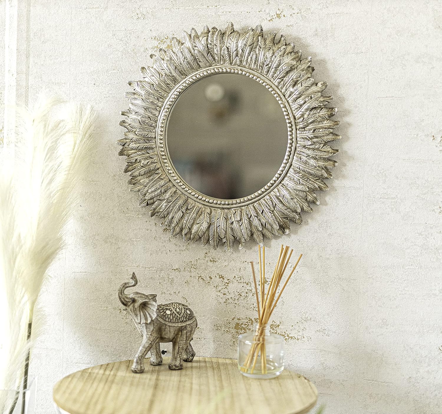 𝐀𝐑𝐓𝐈𝐒𝐓𝐈𝐂 𝐅𝐄𝐀𝐓𝐇𝐄𝐑 𝐂𝐀𝐑𝐕𝐈𝐍𝐆𝐒: Adorned with meticulously carved feather details; this aesthetic room decor mirror stands as a piece of art in itself, adding depth and sophistication to your walls. The intricate rustic craftsmanship brings a unique aesthetic, making it an exquihttps://homeandgardentrends.co.uk/ decorative element in your home.