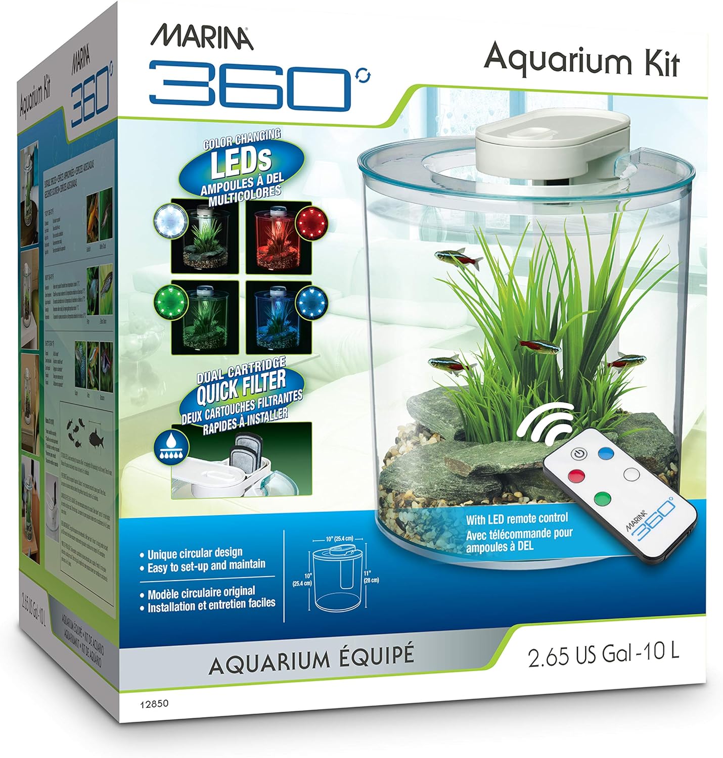 Key Features 2.65 gallon aquarium Removable cover Efficient water circulation pump Integrated filtration system Custom LED lighting Two filter cartridges Three water setup options