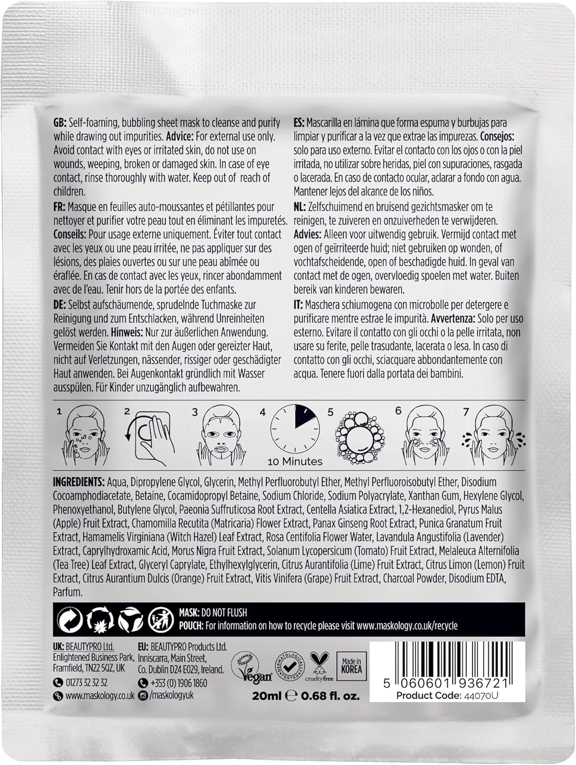 MASKOLOGY DETOXIFYING Professional Sheet Bubble Mask Pack of 1 | Charcoal Face Mask | Self-Foaming Face Sheet Mask Packs | 100% Plant Based | Bubble Sheet Mask |