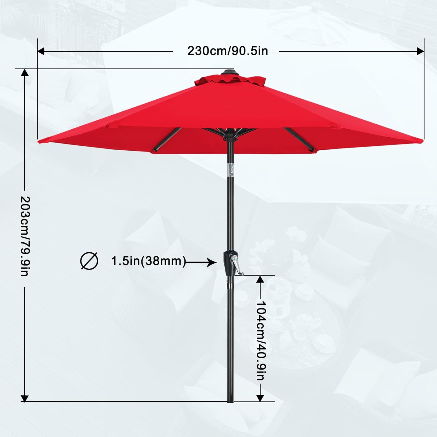MasterCanopy Patio Umbrella for Outdoor Market Table (2.3M,Red)
