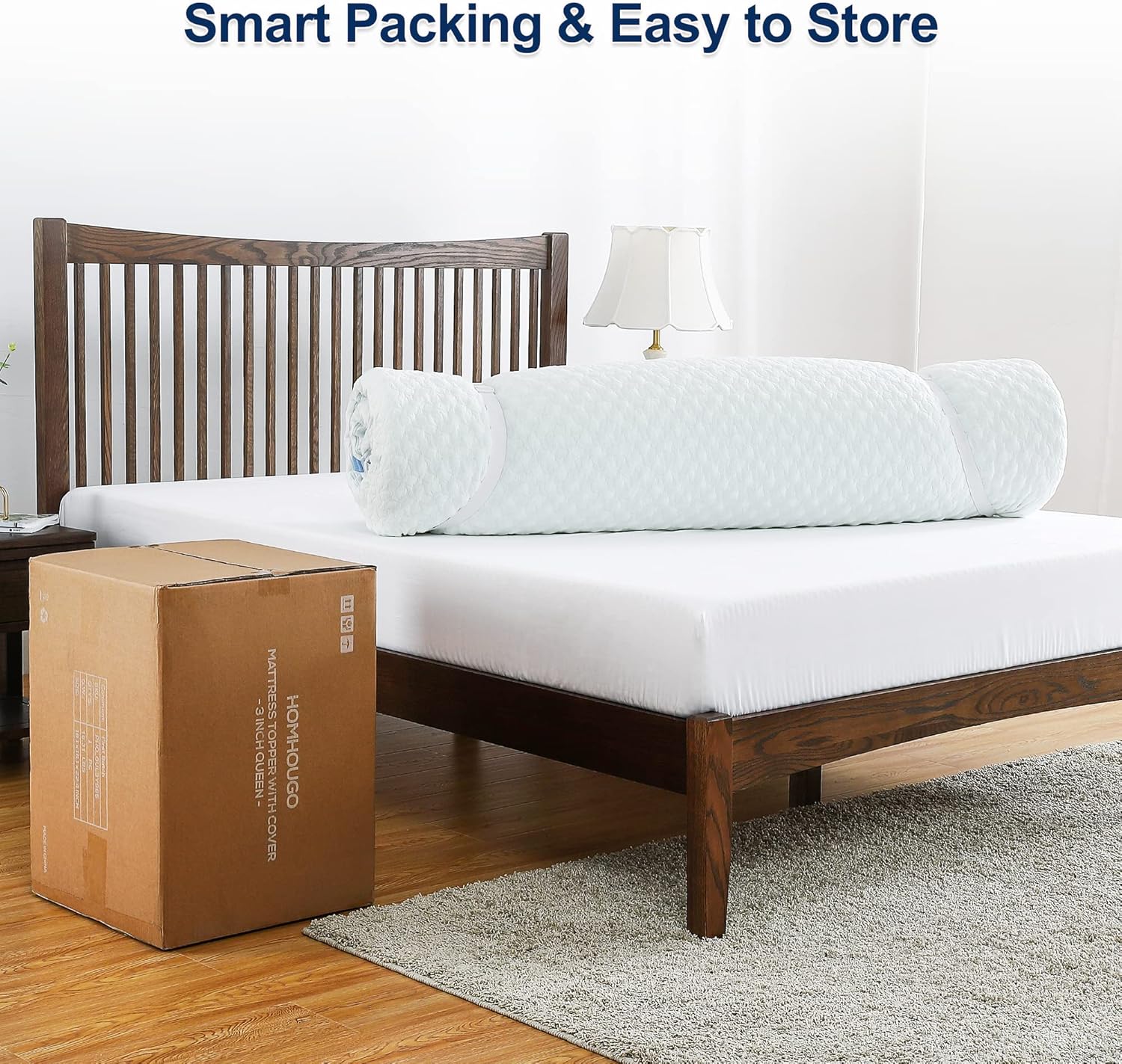 Mattress Topper Queen, Homhougo 3 Inch Green Tea Egg Crate Memory Foam Mattress Topper with Zippered Bamboo Cover, Cloud-Like Soft