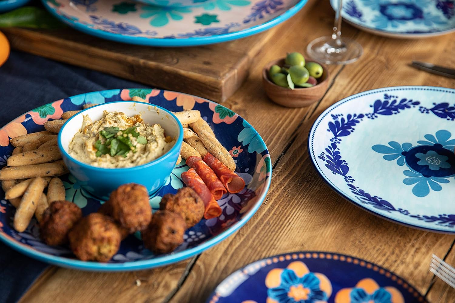 With an aesthetic inspired by the traditional Italian ceramics the collection takes its name from, Majolica brings bold colours to familiar floral patterns. Lively combinations of teal, sky blue, orange and ink blue blend across plates, bowls and platters to invite a laid-back atmosphere of the coast to dining occasions.