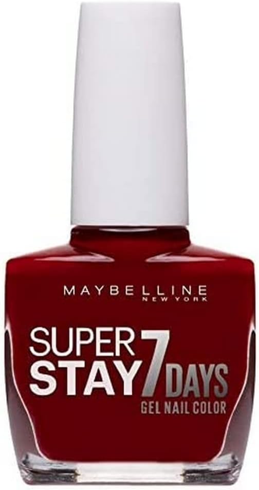 Maybelline Forever Strong Super Stay 7 Days Gel Nail Colour Extremely long-lasting nail polish. Stays with up to 7 days. Forever Strong Pro is a nail polish line from Maybelline with the most hip and trendy nail polish colours of the moment. The colour range fits perfectly with the colours that adorn the New York catwalks. Available in 06 deep red shade.