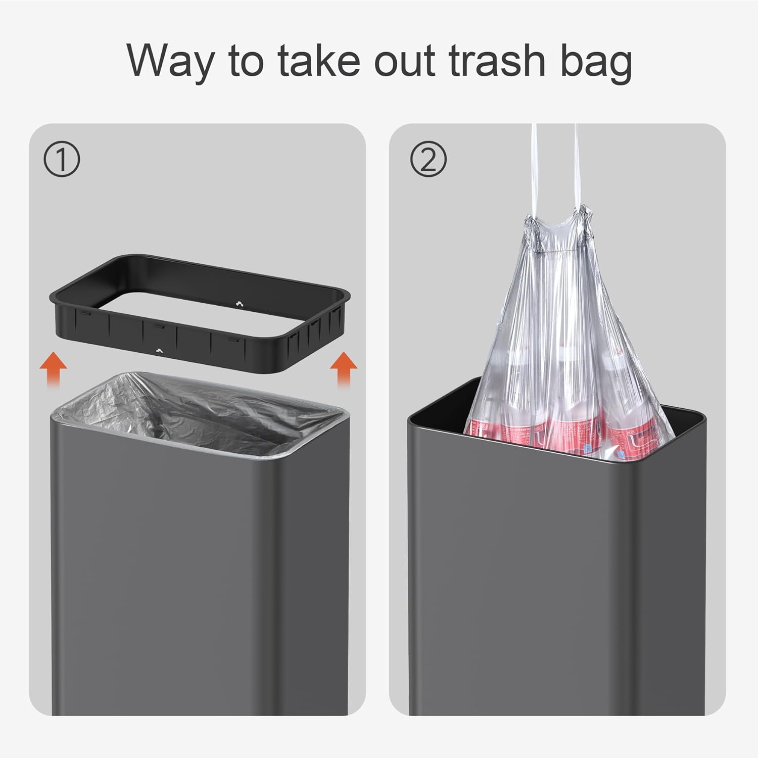 【Stylish Design】Designed with high quality stainless steel and brushed finish, this smart trash can has a stylish appearance, perfect for your quality life. In addition, the brushed finish surface is fingerprint resistant.