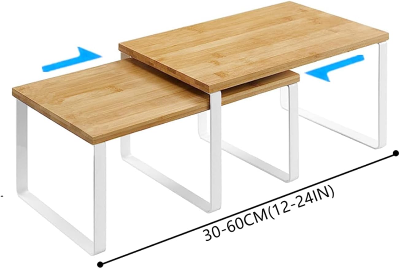 MCRADY 4 Pack Bamboo Kitchen Shelf Organizer for Cabinet,Expanable&Stackable Counter Cupboard Organiser,Storage Rack for Bathroom,Kitchen,Laundry Room-White