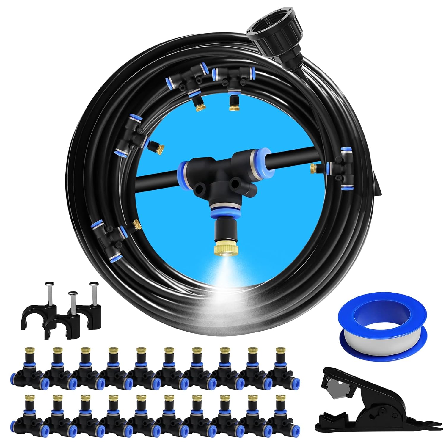 Mdlufee Spray Mist Cooling Irrigation System,66FT/20M Misting System,20 Brass Mist Nozzles,Water Mist Hose for Backyard,Garden,Greenhouse,Umbrella