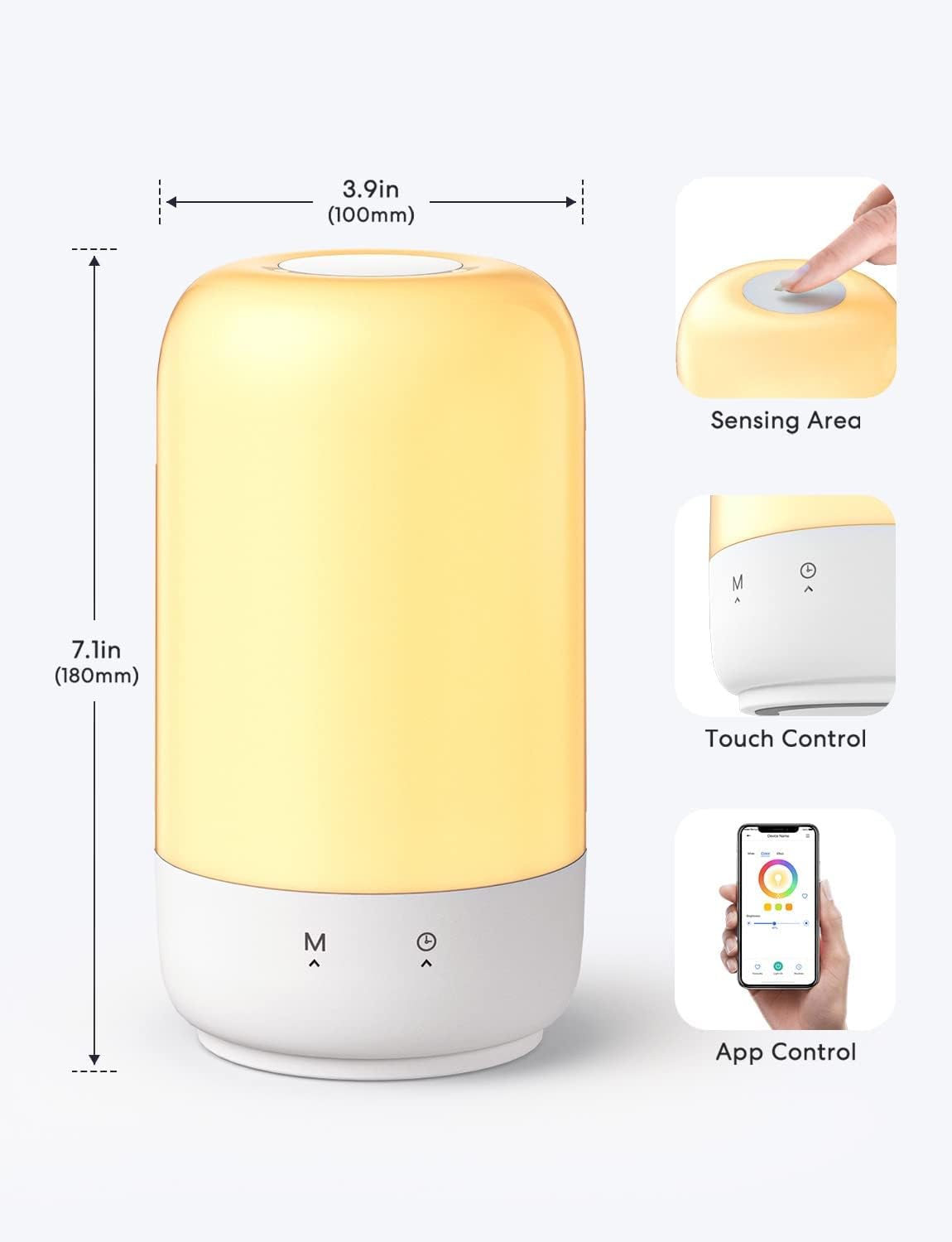 meross Smart Table Lamp, WiFi Lamp Support Apple HomeKit Alexa Google Assistant SmartThings, Bedroom Touch Lamp RGBWW Colour Voice Remote app Control (2.4GHz WiFi Only)