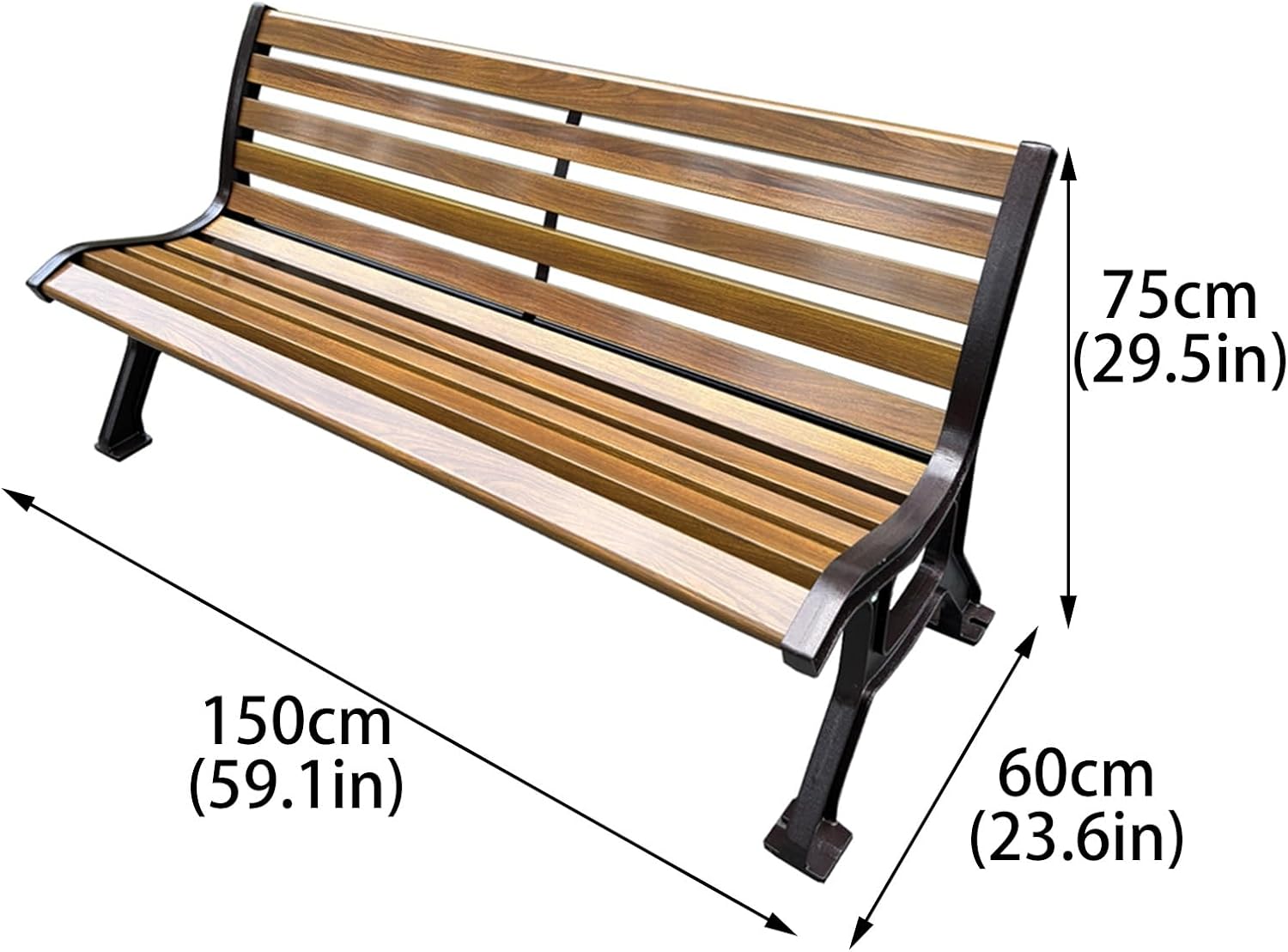 Sturdy & Easy to Care The park bench is made of premium metal, all weather, rustproof and waterproof outdoor finish to ensure a durable patio bench for long-lasting service life and easy to maintain.
