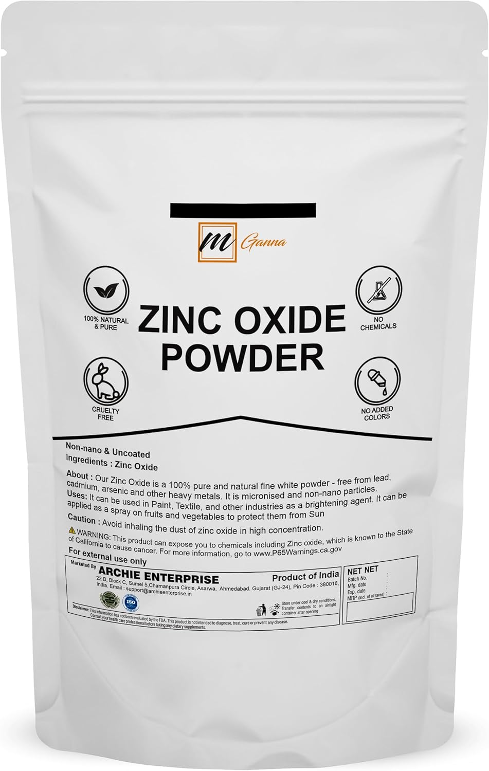 mGanna 100% Natural Zinc Oxide Powder Non-Nano and Uncoated for Cosmetic formulations 0.22 lbs / 100 GMS