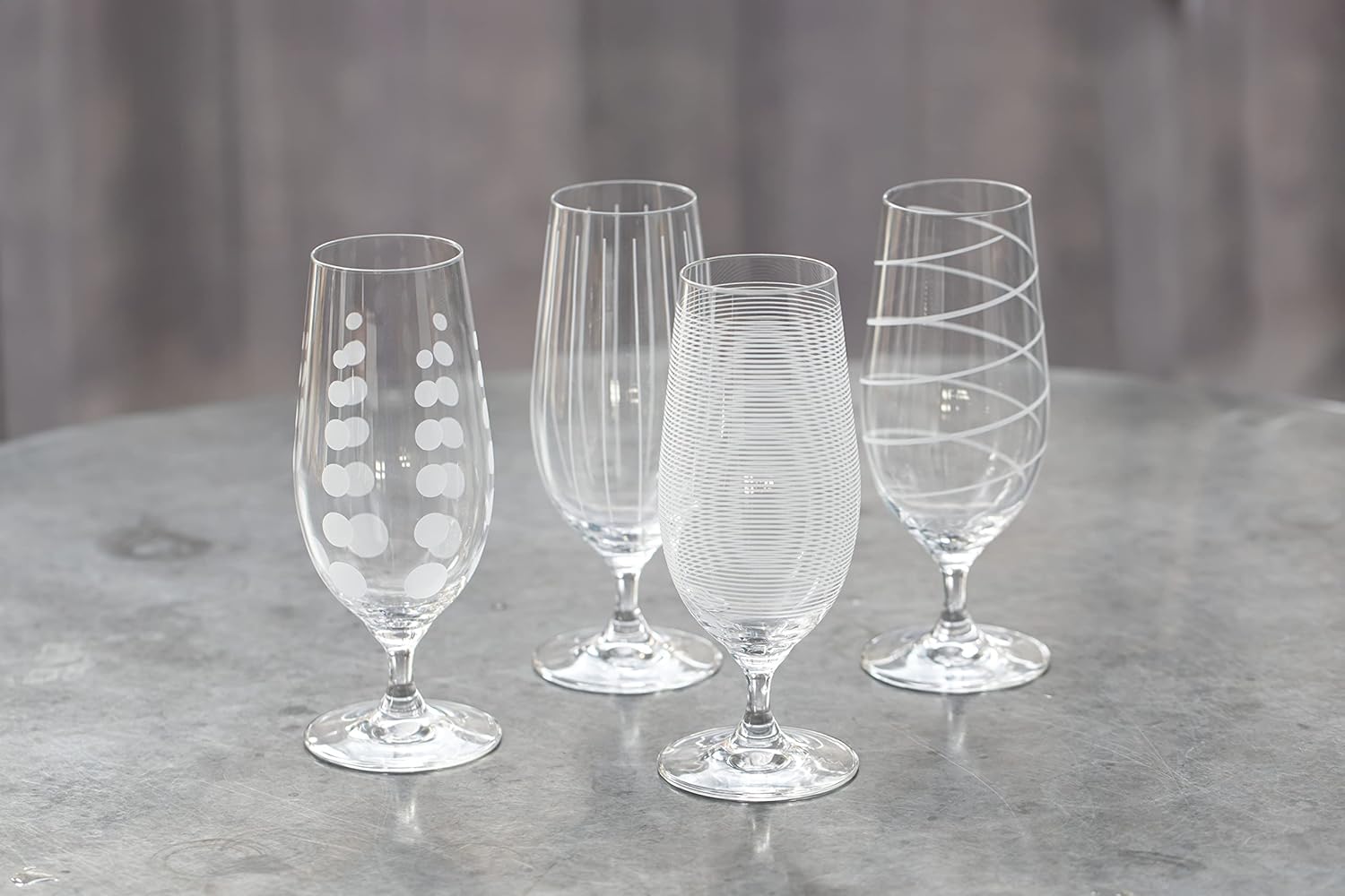 Be unique with precision-etched designs in a sophisticated, coordinating collection. Made of stunning crystal glass, each 460ml beer glass is decorated with its own distinct, celebration-ready design. Guests will be delighted when you serve them one of their favourite pilsners, pale ales or porters in their own glass, etched with shimmering silver sweeps, loops or dots.