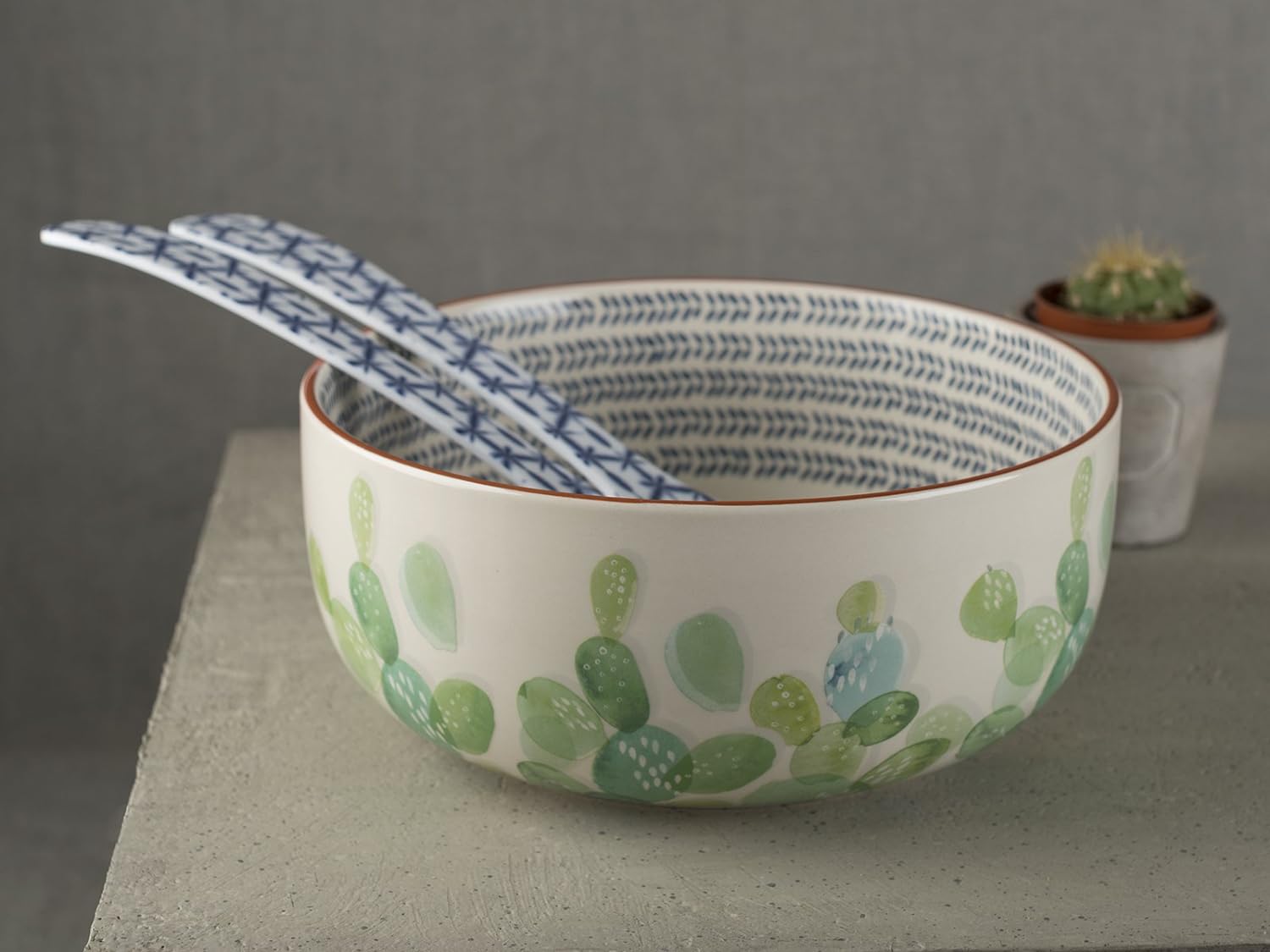 STYLISH DESIGN: this high quality ceramic salad bowl is decorated with a captivating cactus design