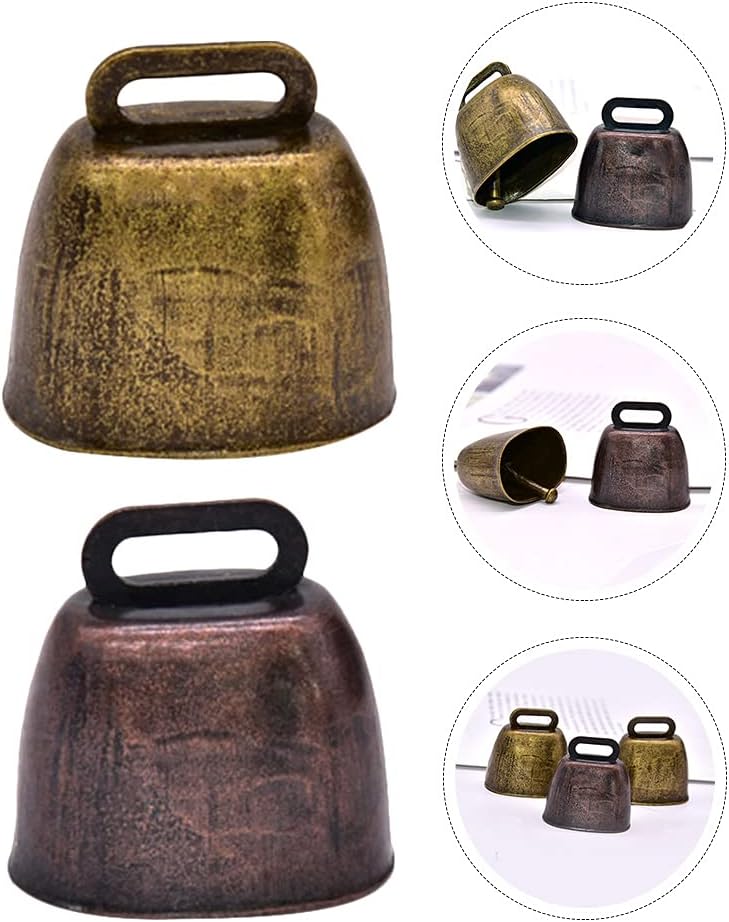 Milisten Bells for Crafts 2pcs Cow Bells Long Distance Horse Sheep Iron Bells Cattle Loud Farm Animal Grazing Bell Bronze Red Bronze Style Small Bell