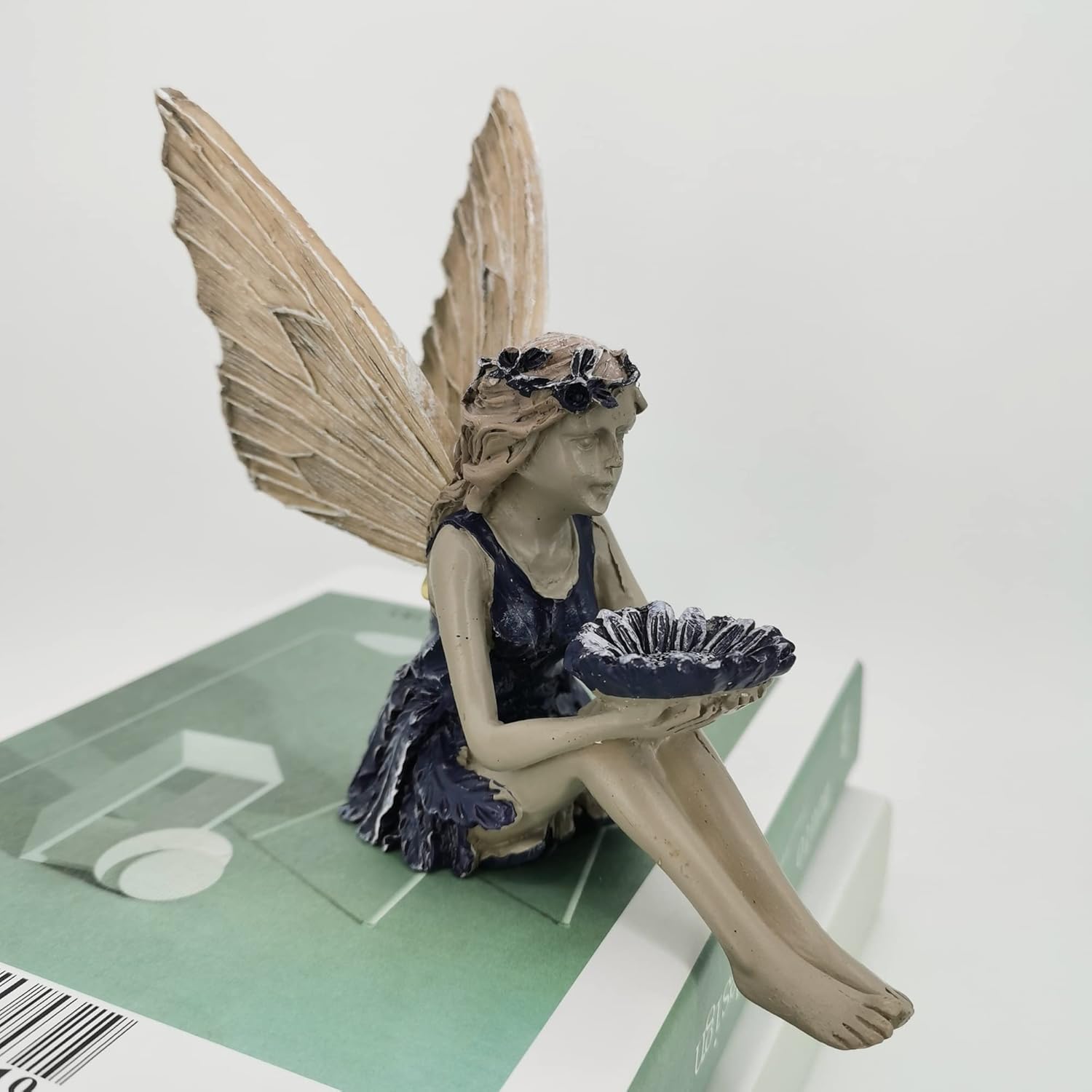 MINGZE Fairy Garden Statue, Outdoor Sitting Magic Elf Bird House Ornaments Winged Angel Fairies Sculpture Resin Figurine for Patio Yard Porch Christmas Landscape Home Decoration