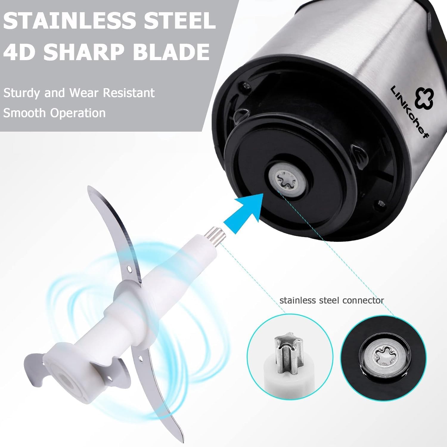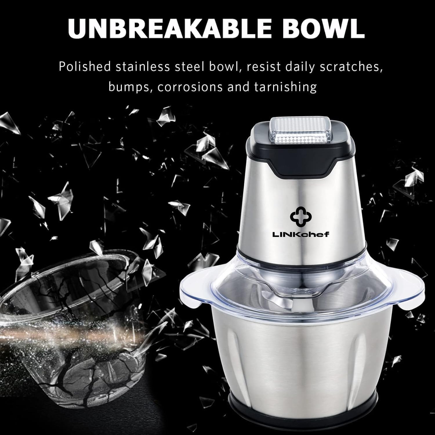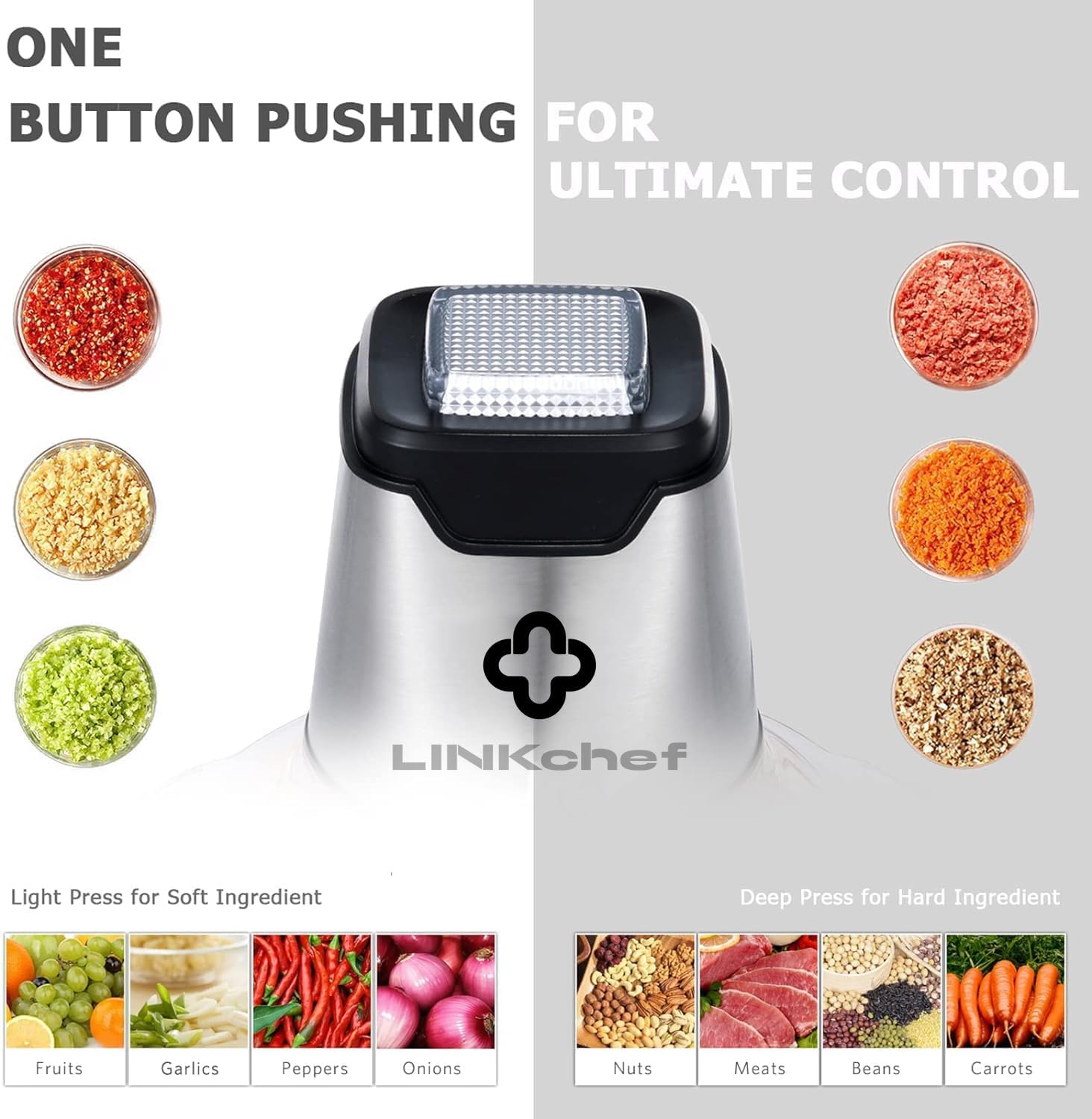 400W POWERFUL CHOPPER – LINKChef mini chopper equipped with 400W pure copper motor allows you chopping, blending, pureeing, mixing and mincing a variety of ingredients in seconds. It is not only convenient for preparing sauces, salads and baby food, but can also be used as a meat grinder to help you prepare minced meat and crushing ice.