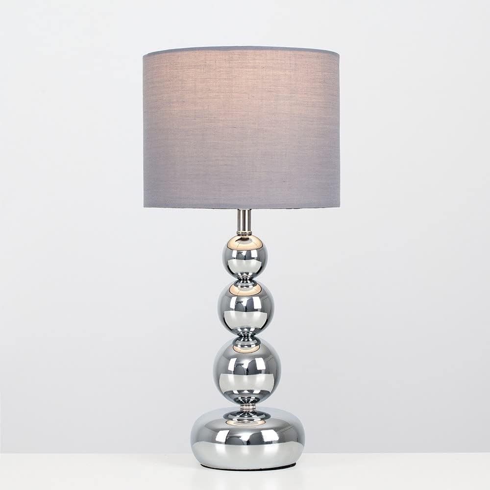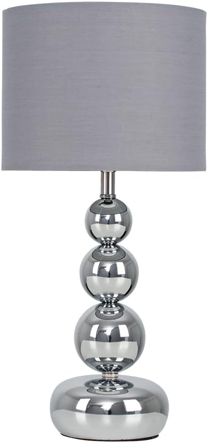 Create a real style statement and complete your living space look with this impressive MiniSun Modern Table Lamp in a Polished Chrome Finish with a Stacked Ball Feature. Complete with a Grey Faux Silk Shade!