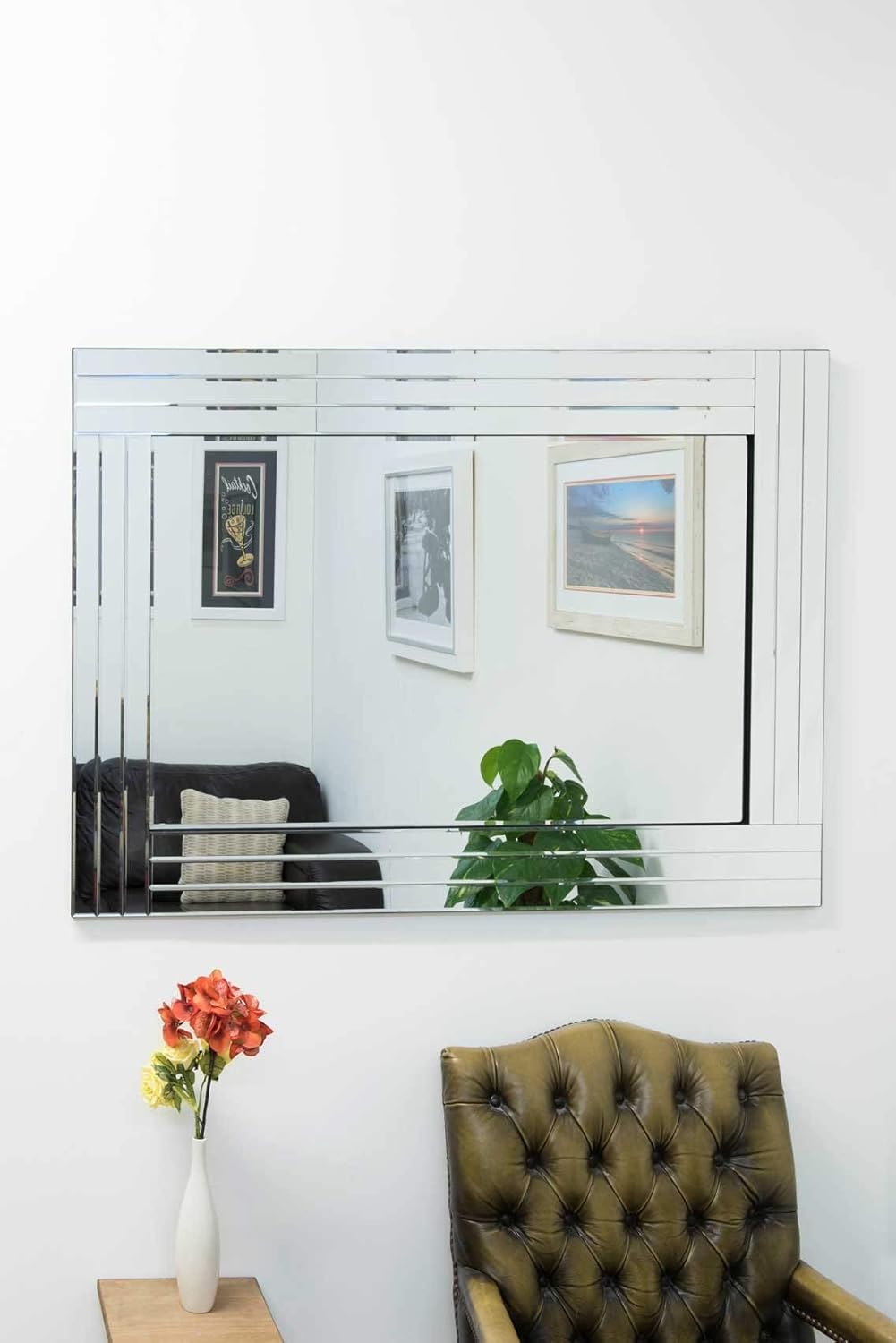 MirrorOutlet Modern Bevelled Triple Edge Modern Venetian Mirror, Silver, 120 x 80 cm,YC028