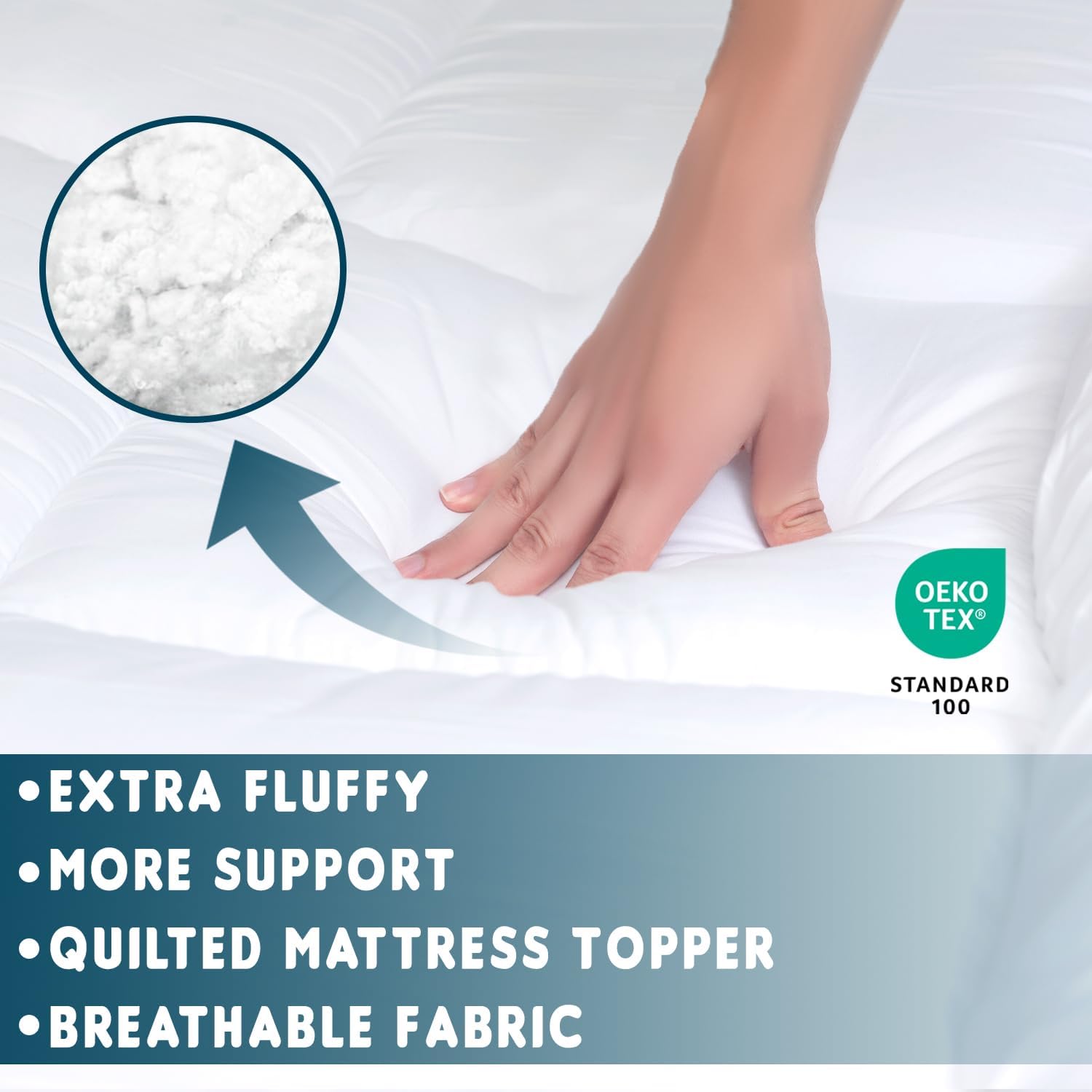 FREE EXTRA FITTED SHEET – We’re including a complimentary 100% poly cotton fitted sheet with this king mattress topper to ensure it stays in place and provides a snug fit. And you can also use it before applying the Mattress Topper or after applying the Mattress topper. Enjoy added convenience and comfort!