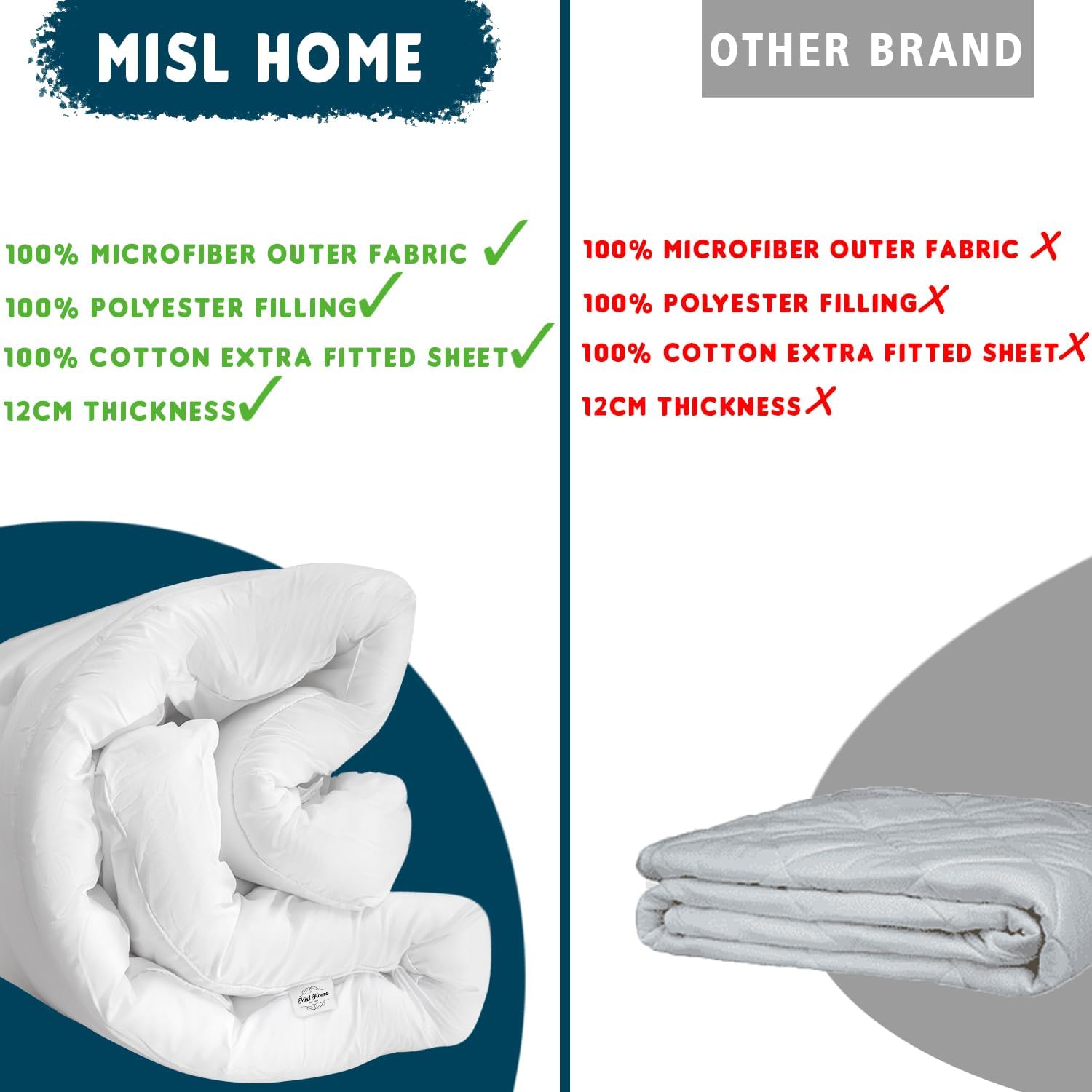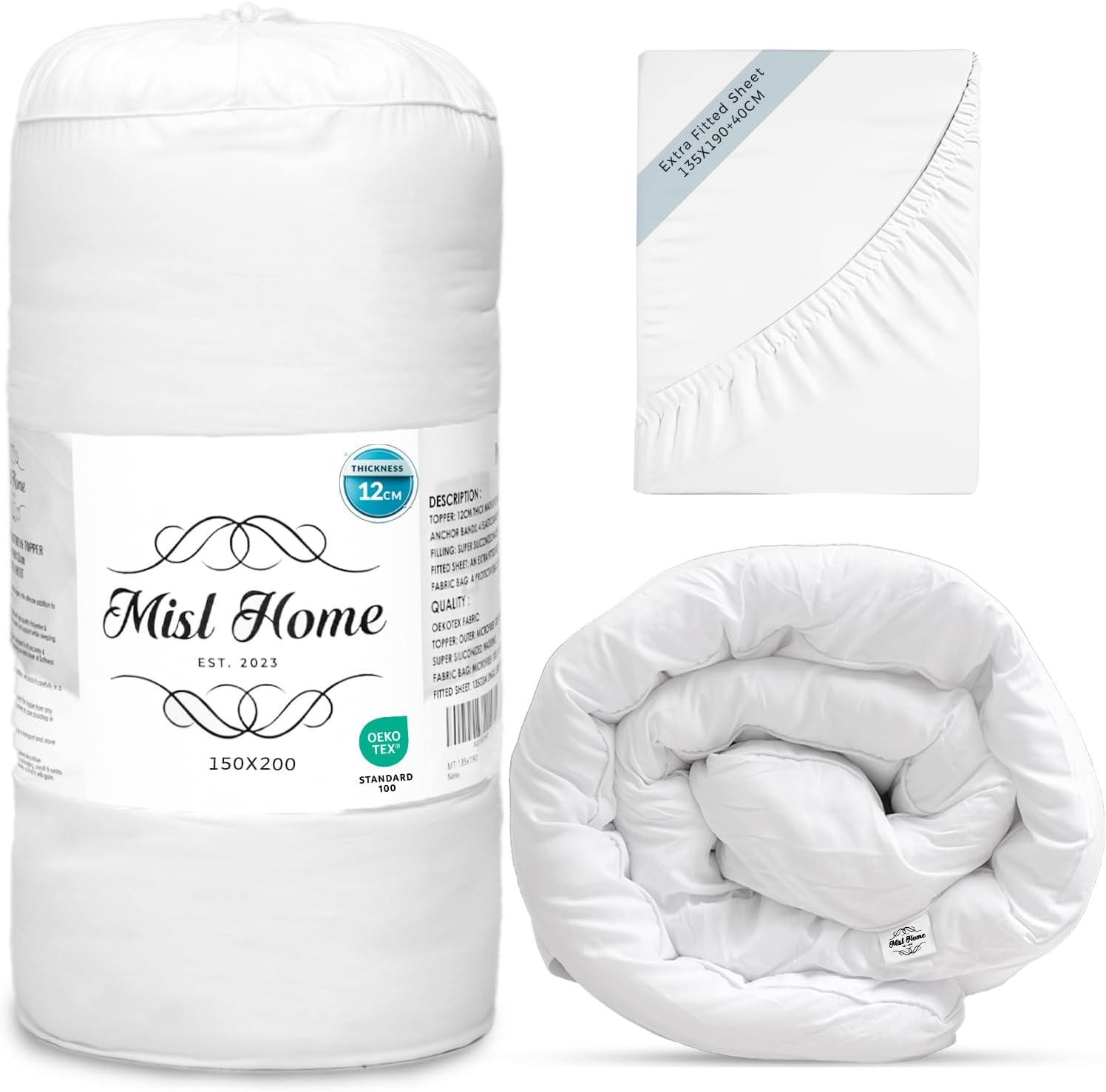 MISL HOME Mattress Topper Kingsize Bed 12cm Extra Deep & Extra Thick – 800gsm 150×200 – FREE Cotton Fitted Sheet, Microfiber Hypoallergenic Mattress Topper – Elastic Straps to fit up to 40cm Mattress