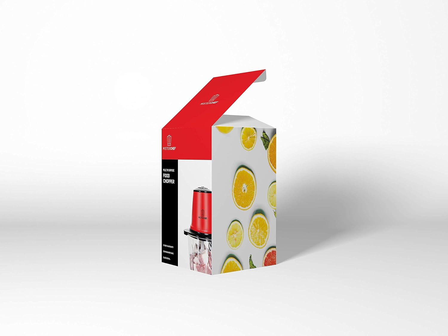 MisterChef Red Mini Chopper, Blender, Food Processor, 3 bi-Level Blades – Energy Saver 200W with Turbo – 1.5L Food Capacity Glass Bowl – 2 Year Warranty – Metallic Red