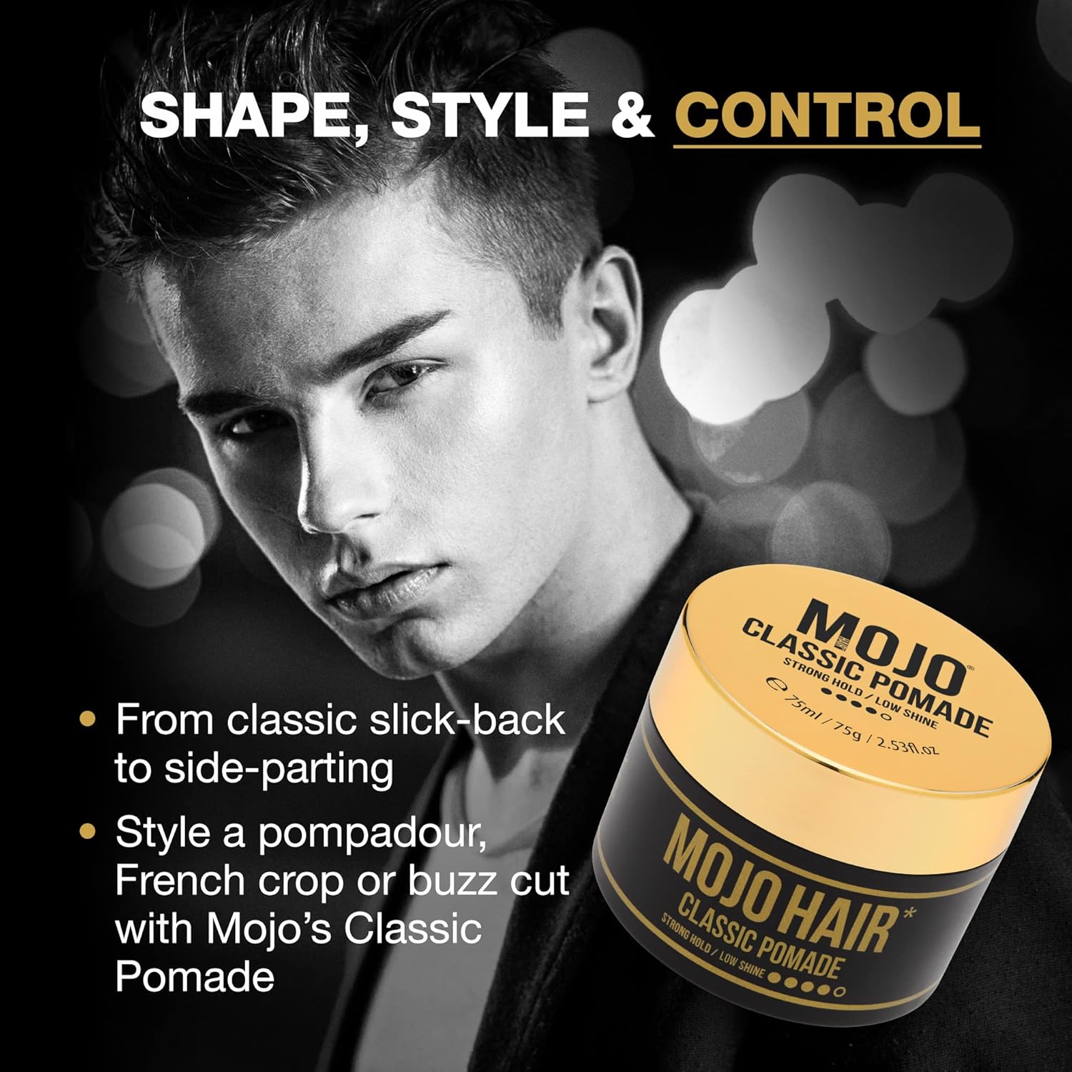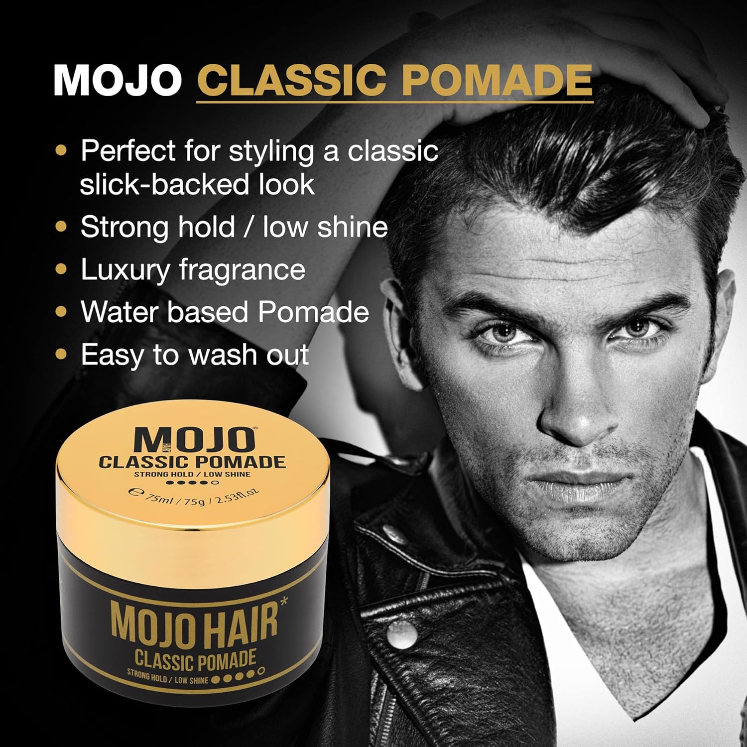 MOJO Hair Classic Pomade (Water Based) with Strong Hold & Low Shine,Washes Out With Ease,Luxury Fragrance,Hair Styling Products For Men & Women,Gifts For Men 1x75ml/64g/2.53fl/oz
