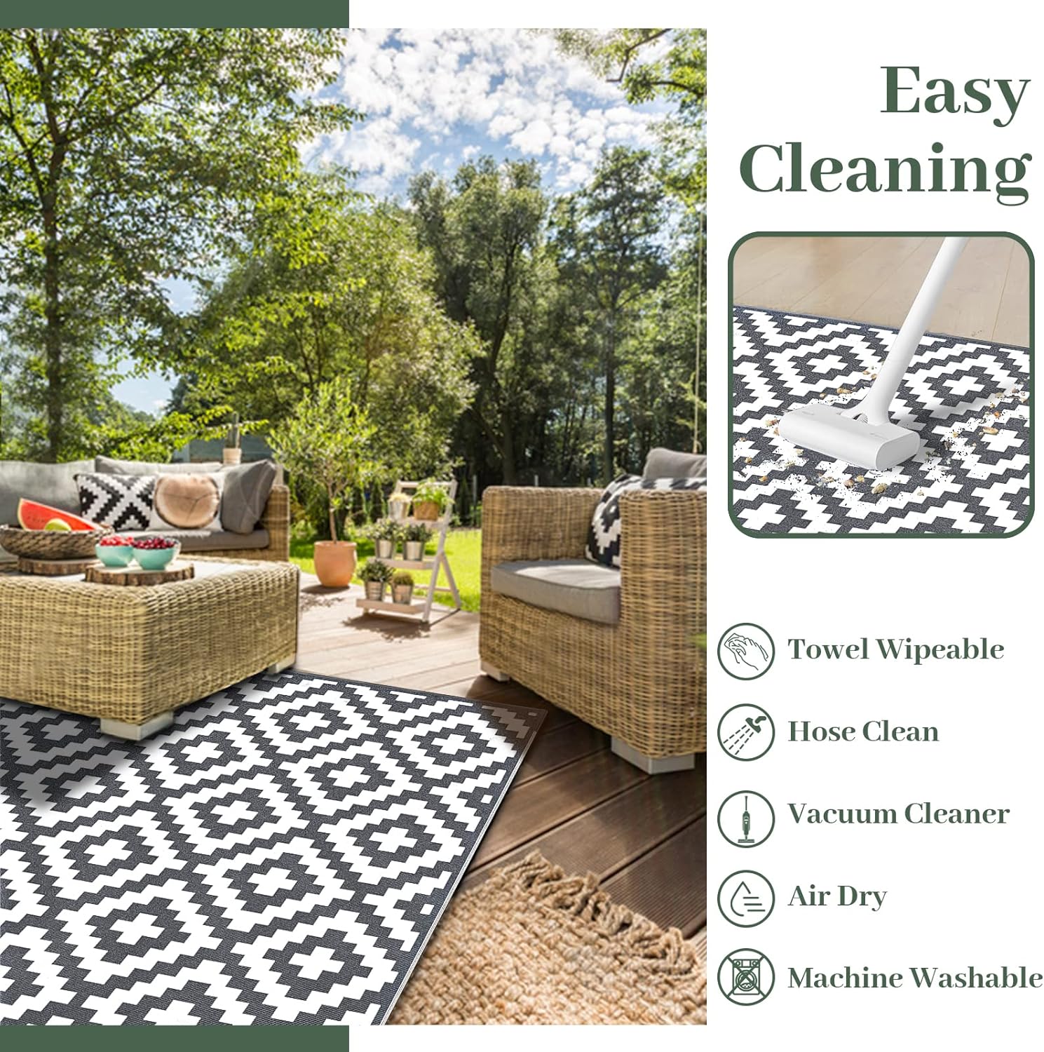 【Reversible Outdoor Area Rug】 The reversible outdoor rug brings two different looks to your patio and makes the perfect decorative statement. The stylish and trendy geometric design blends easily into any environment.