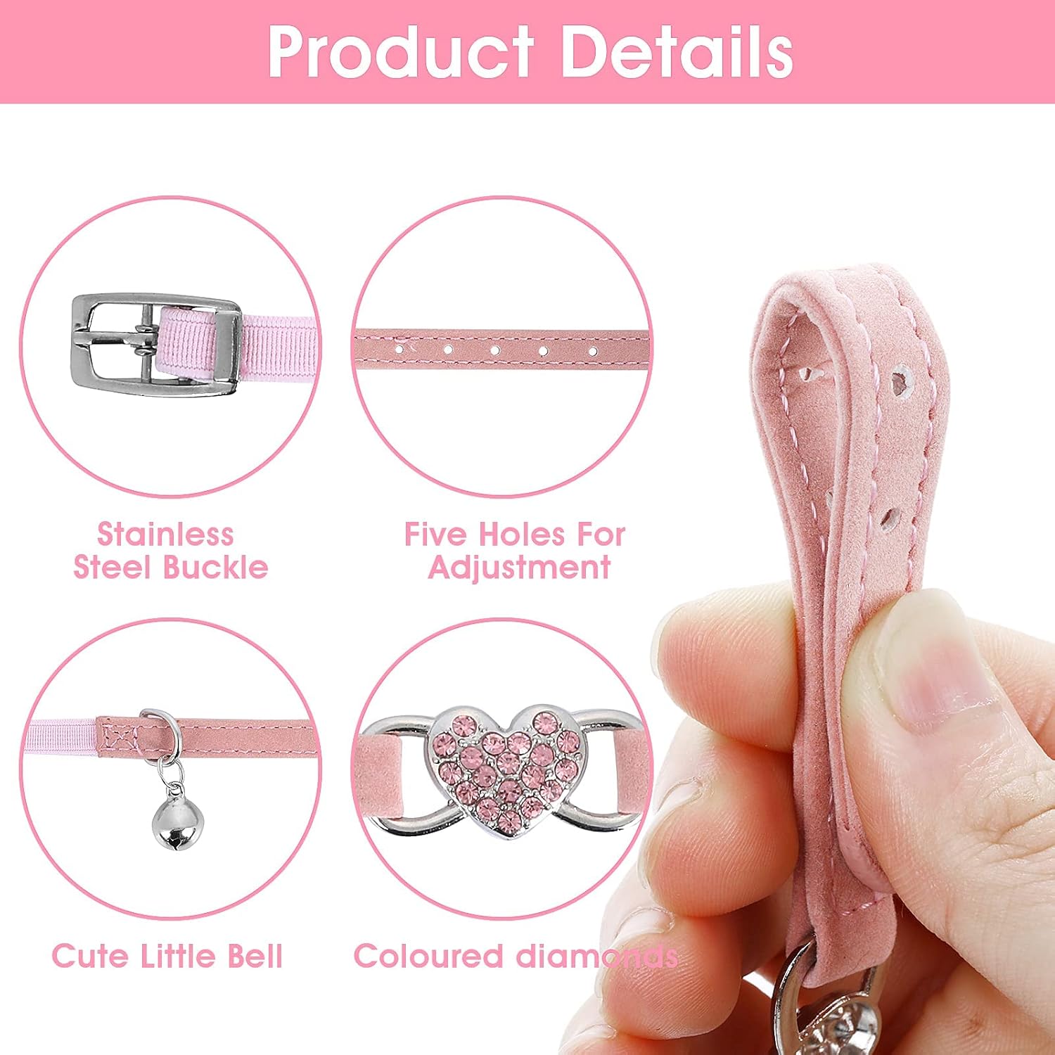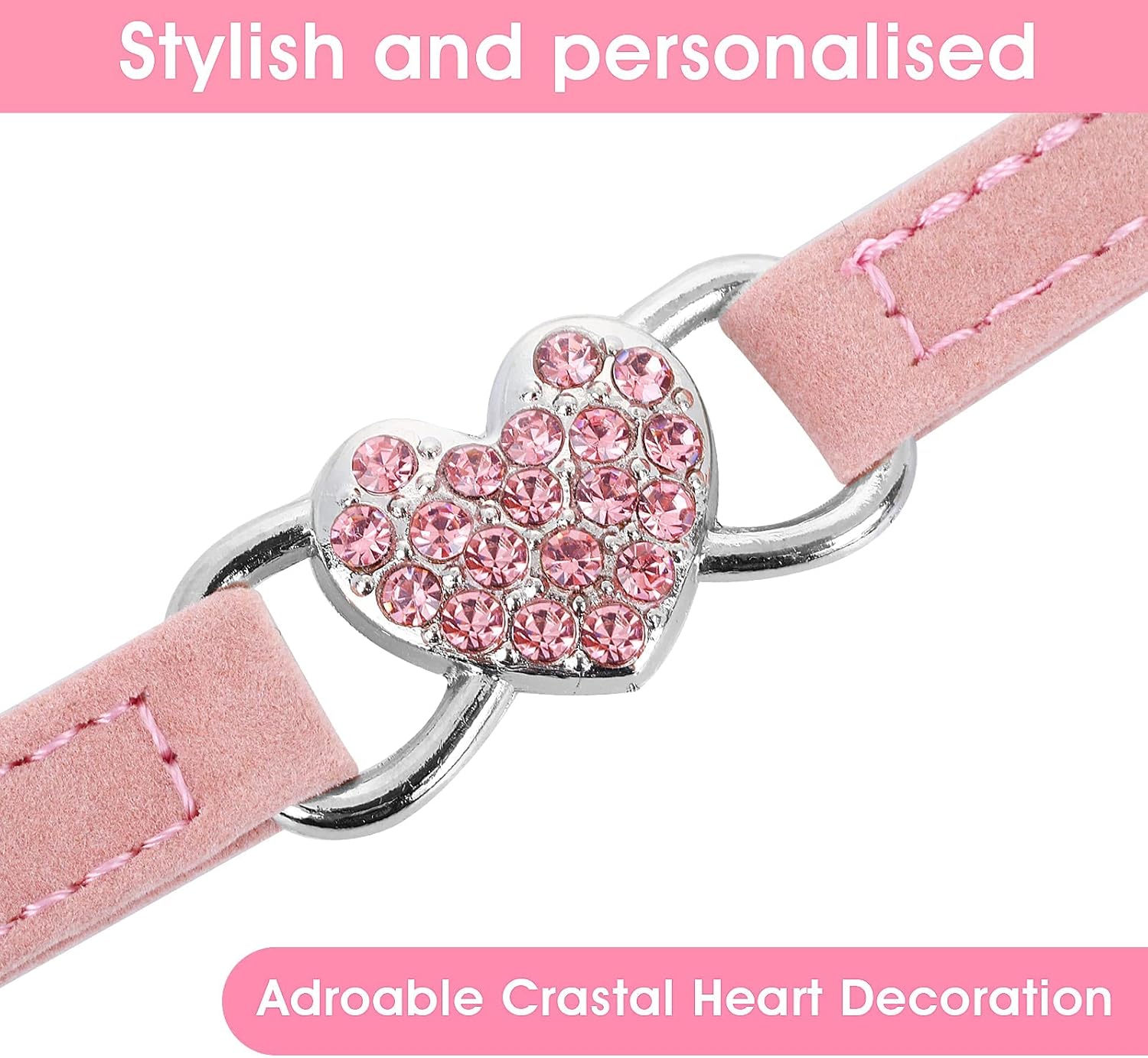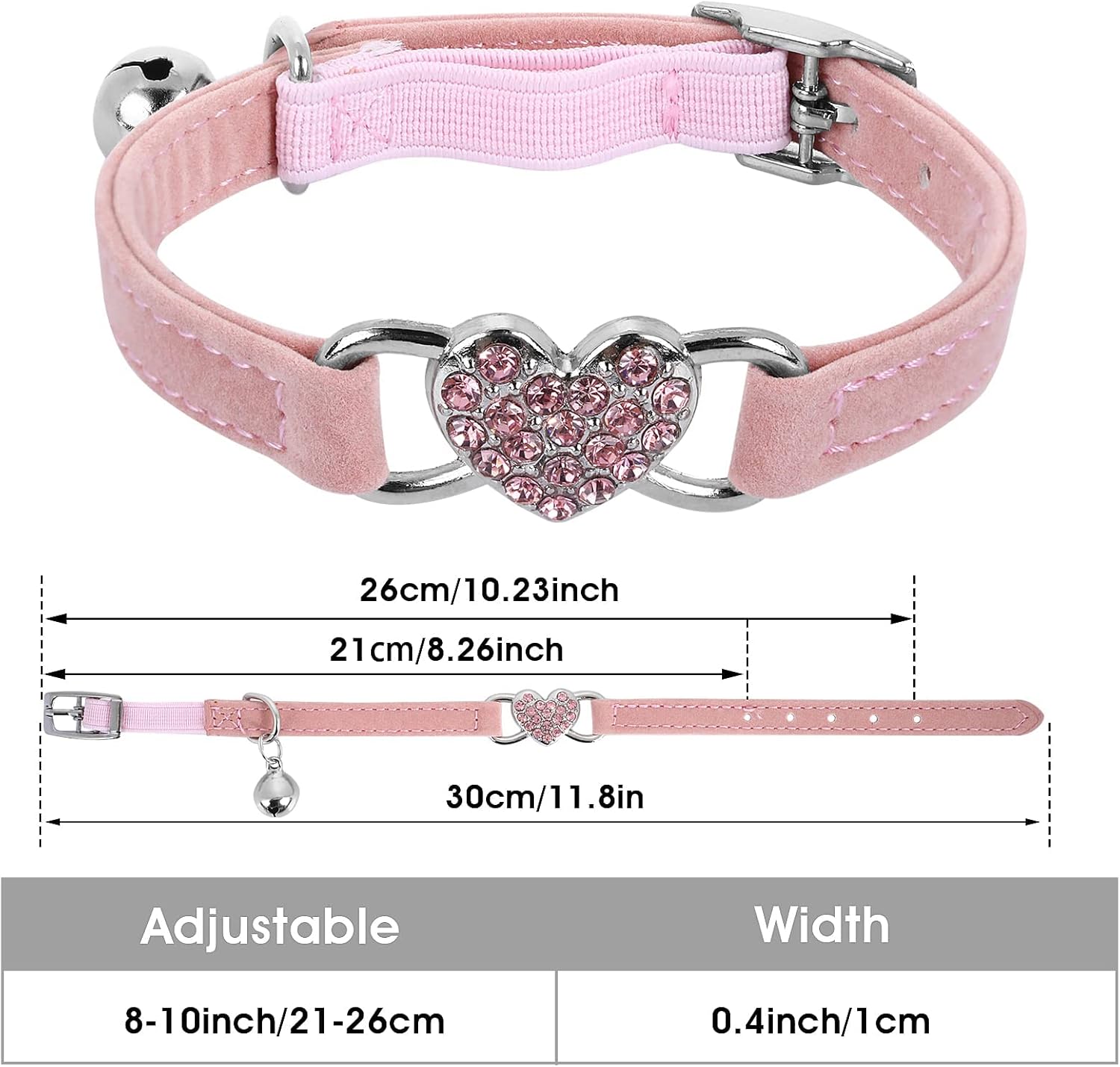 Molain Heart Bling Cat Collar, Adjustable Collar with Safety Belt and Bell Rhinestone Collar for Kitten Small Dog Cat (pink)