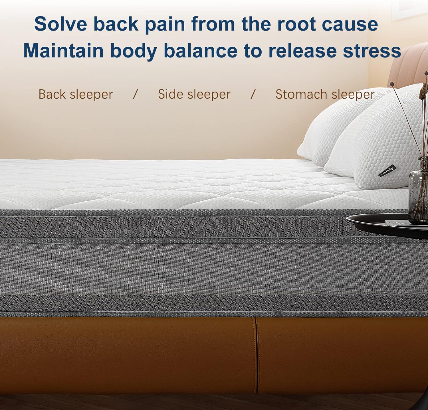 ⭐Multi-layer comfort🌙 The mattress top is made of breathable high-quality fabric. The second layer of 0.5 inch memory foam ensures a comfortable and cool sleep. The third layer of 2 inches of comfortable foam & support foam layer provides support to avoid the feeling of being trapped in quicksand. The fourth layer is supported by a Individually Pocket Spring layer to strengthen the support. There is a non-slip layer at the bottom of the mattress to ensure that the mattress doesn’t slip.