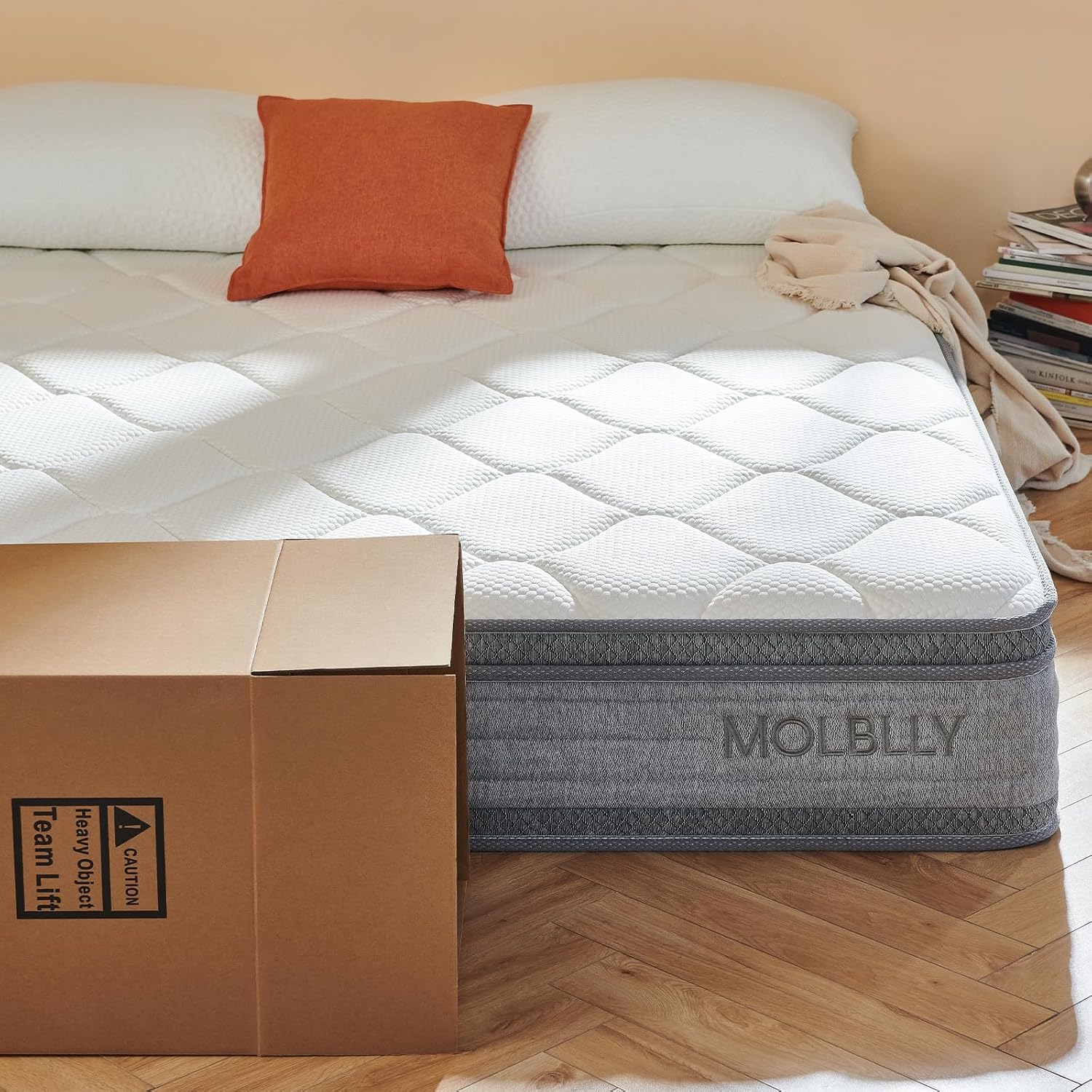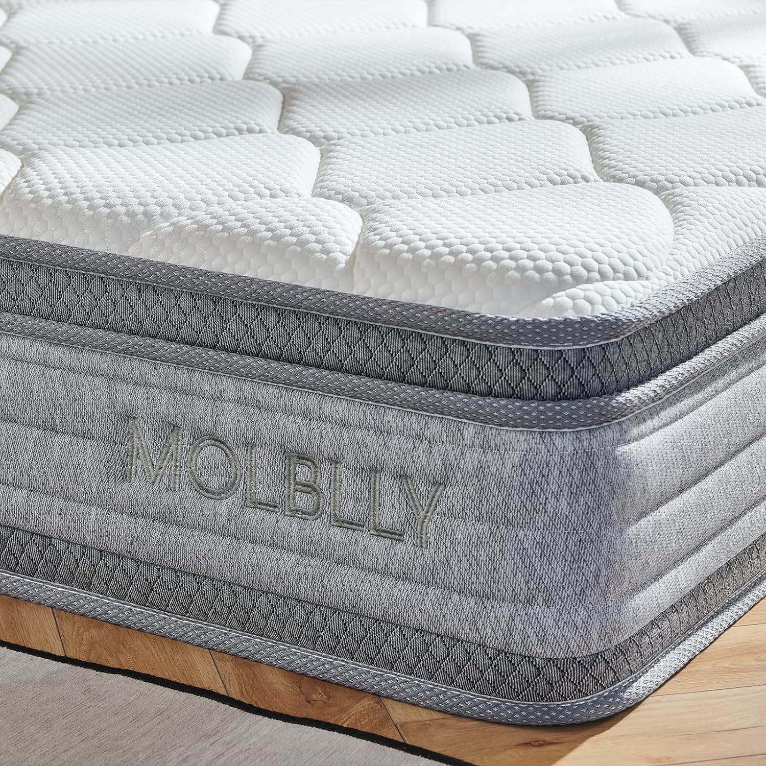 ⭐Excellent Hybrid Design🌙 Get ready for the perfect sleep experience with our Molblly double hybrid mattress. On the surface, quilted fabric and a layer of foam provide cozy comfort, while heavy-duty steel coils offer even more support below.