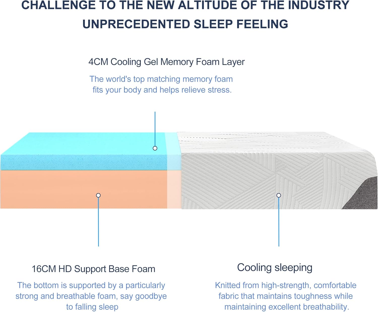 ✅ {Support System}: The foam mattress is designed to adapt and conform to your body, providing optimal support and comfort for all sleepers. The gel memory foam and high-density base support foam work together to reduce motion transfer from a partner, ensuring undisturbed sleep,and comes with a washable soft Fire retardant cover.