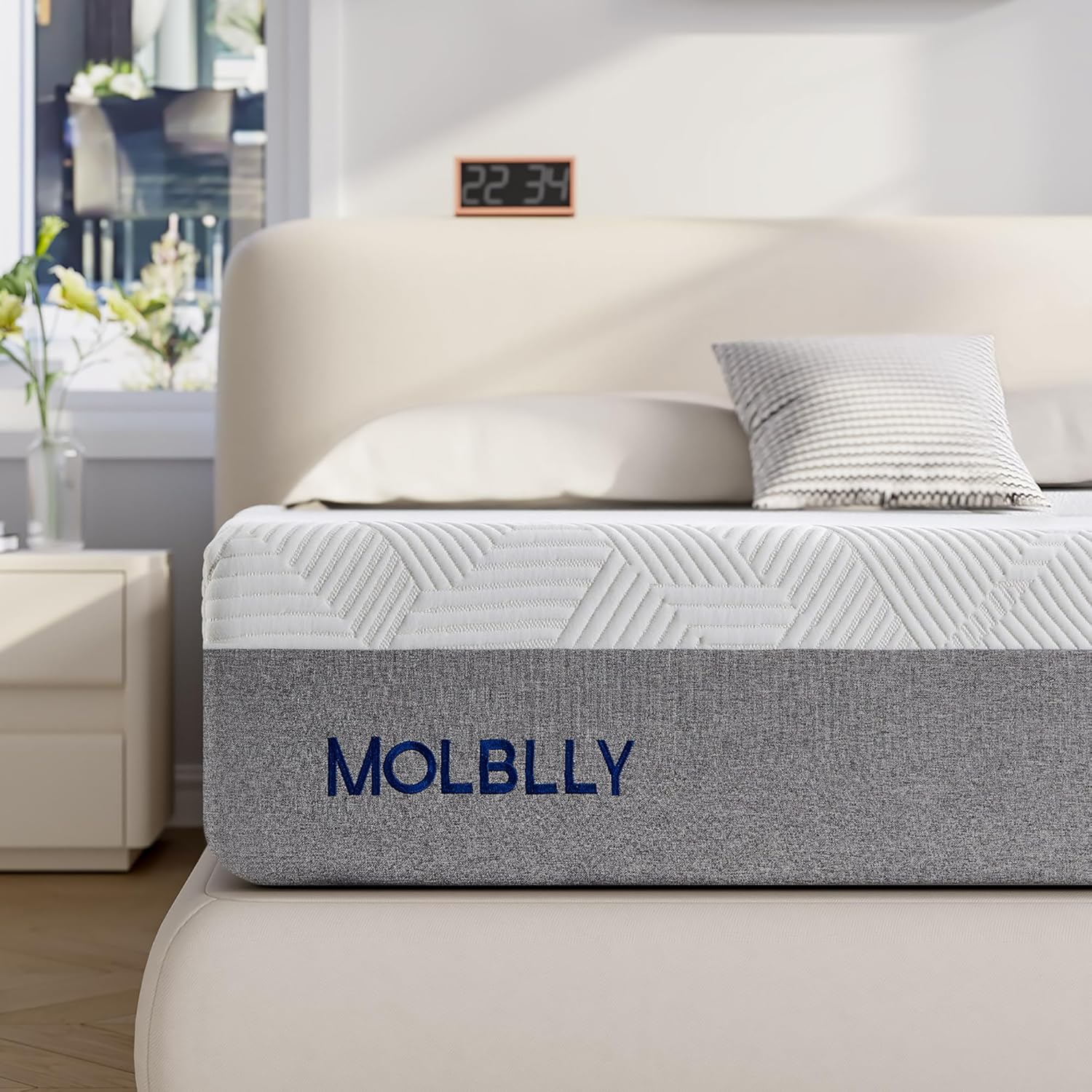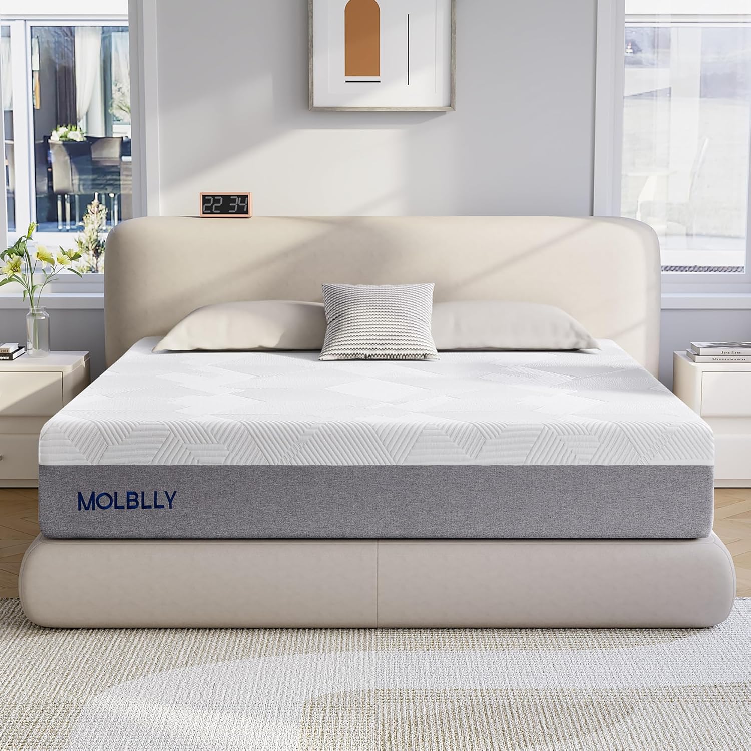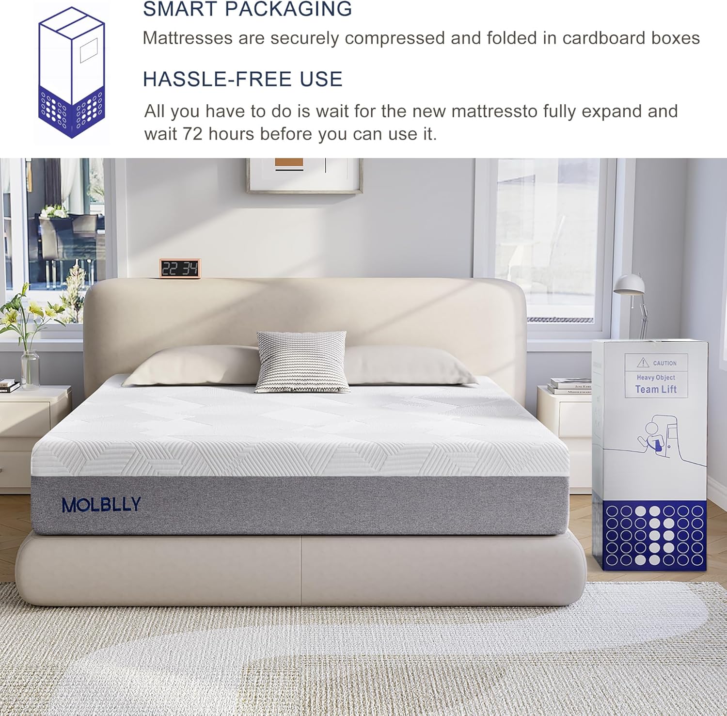 ✅ {2-Layer Foam}: Molblly double mattress is designed with a 2 layers all-foam system, a top layer of gel memory foam and a second layer of high-density support foam. This design provides optimal support and pressure point relief, making it perfect for those suffering from lower back pain.